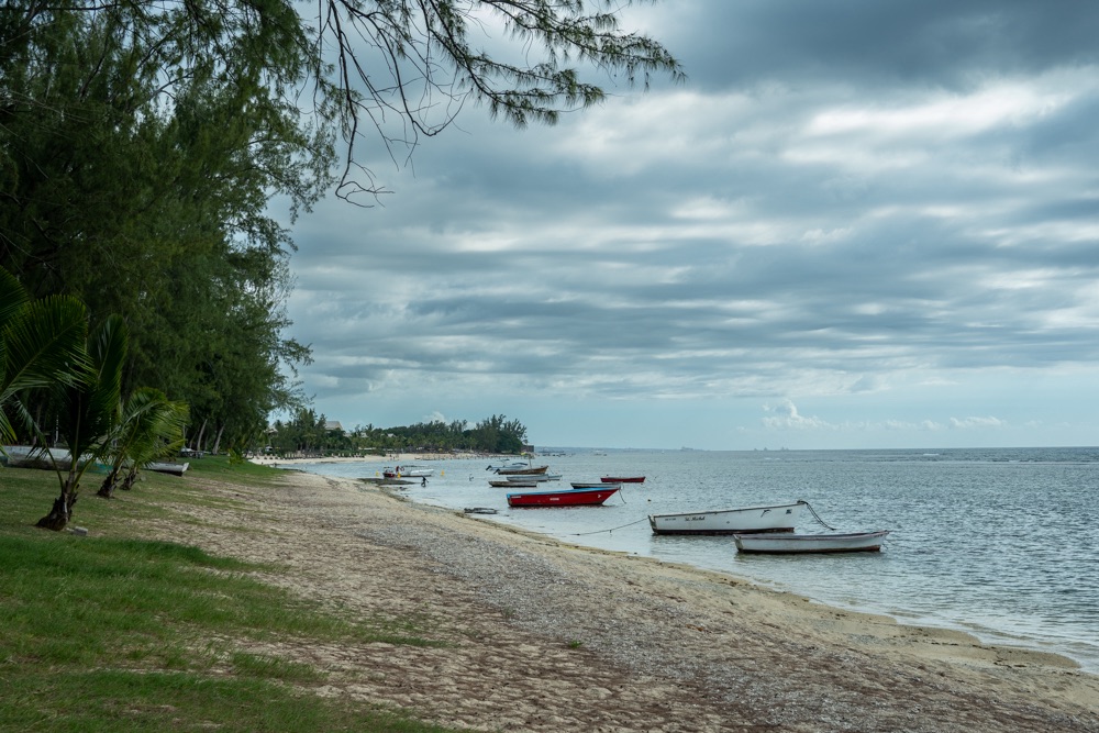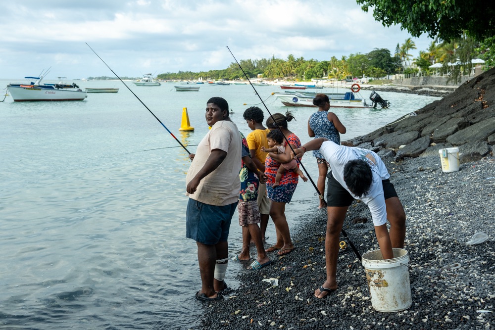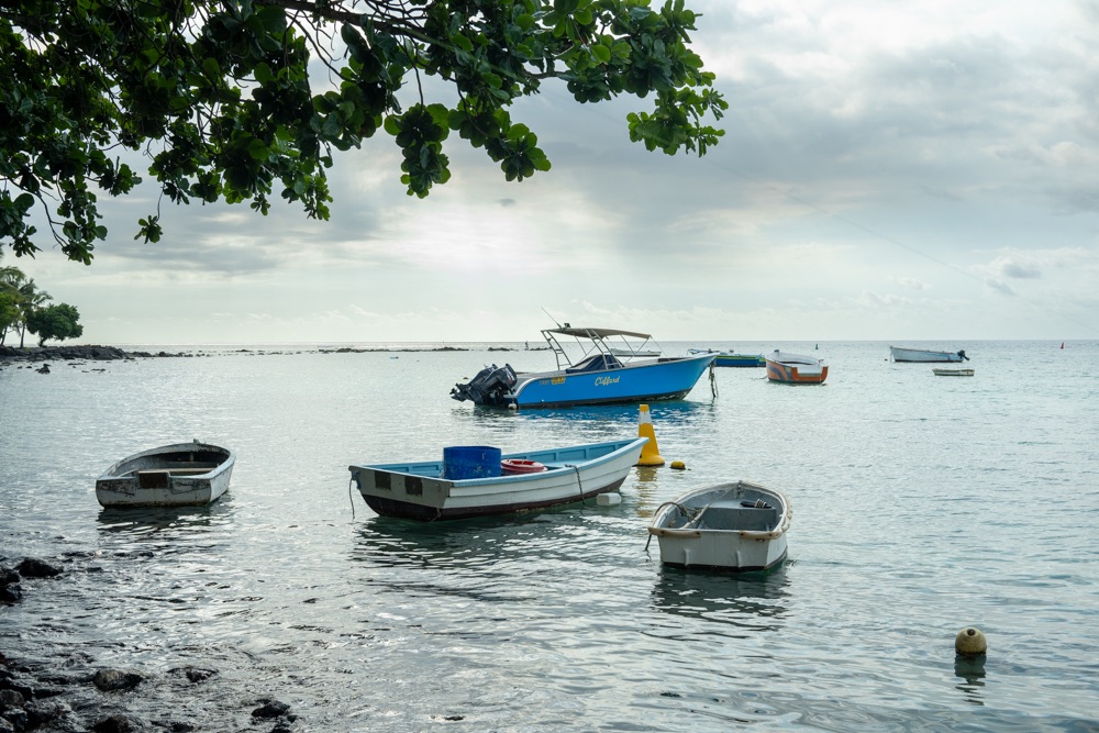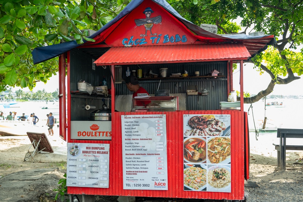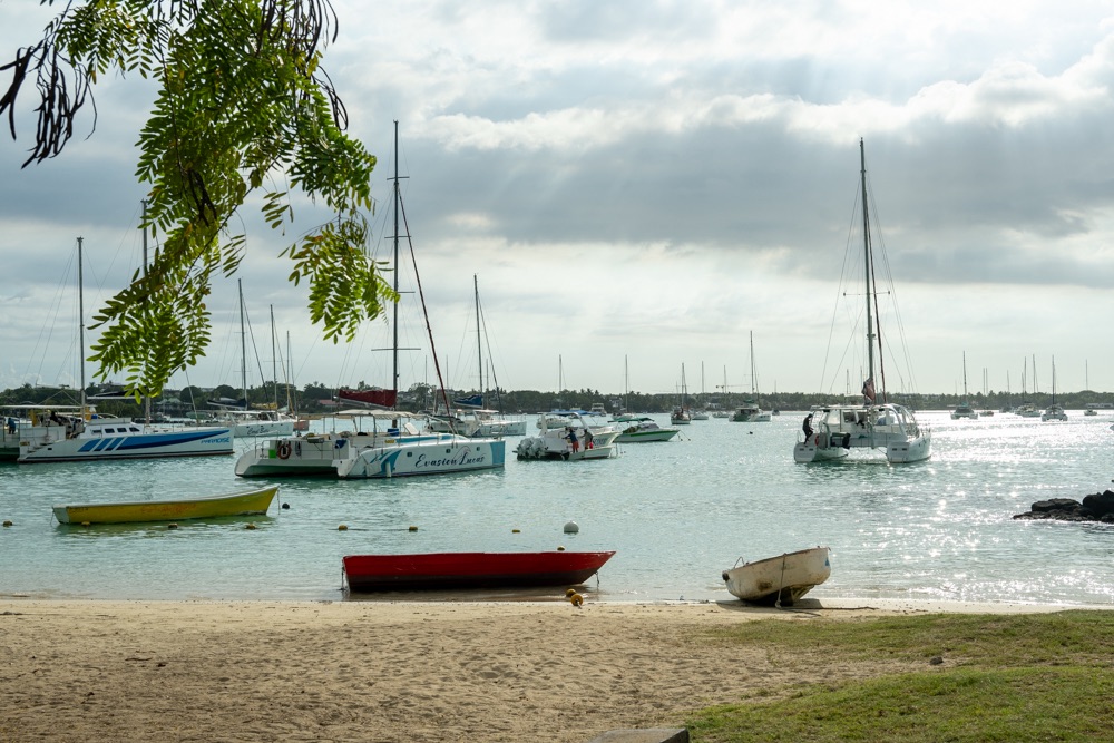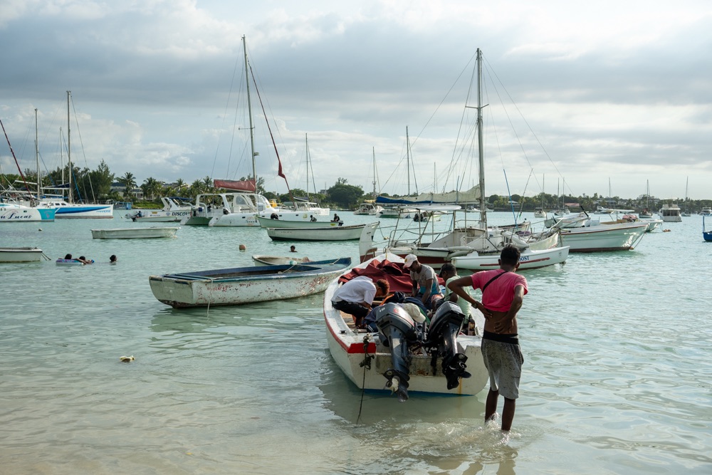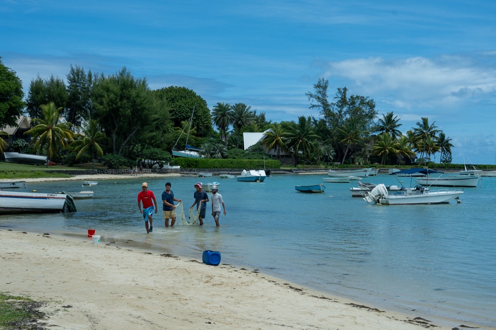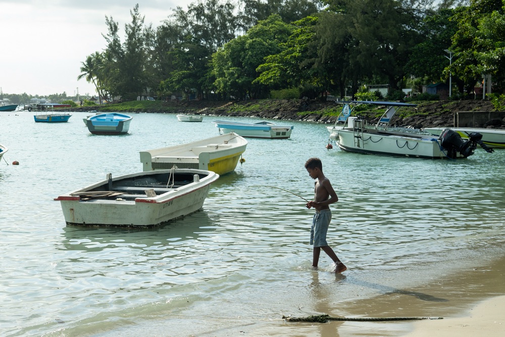 Délután kettő körül aztán lefújtuk a sziesztát. Összeszedtük magunkat, leráztuk a homokot, és úgy döntöttünk, hogy a nap hátralévő részében még csavargunk egy kicsit a környéken. Elvégre Mauritius túl szép ahhoz, hogy csak egy helyben üljünk. Az északi partszakaszon már háromszor elmentünk a Grand Baie (Nagy Öböl) mellett, gondoltuk ma meg is állunk. Az öbölben “parkoló” színes halászhajók, valamint a helyiek, ahogy a parton élik a hétköznapjaikat: pecázó családok, halászok a hálóikkal és csónakjaikkal, valamint a halat pucoló fiatal srácok, akik aztán az éttermeknek adják le a napi fogást, lepikkelyezve és kibelezve. Padra kiült idősek, ahogy beszélgetnek a mindennapi dolgokról, mellettük pedig a part mentén fürdőző gyerekek és gazdátlan kutyusok egyaránt. Közben pedig a part és út közötti szakaszon kirakott bódékból falatozók, néhányuk csinosabban, láthatóan munkából jövet, némelyek meg lazábban.