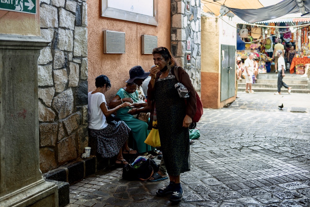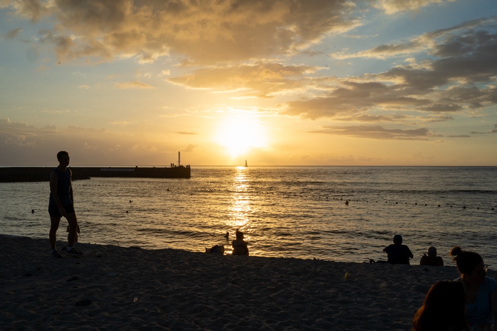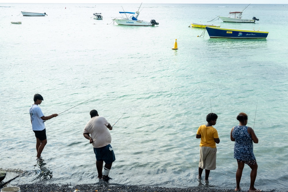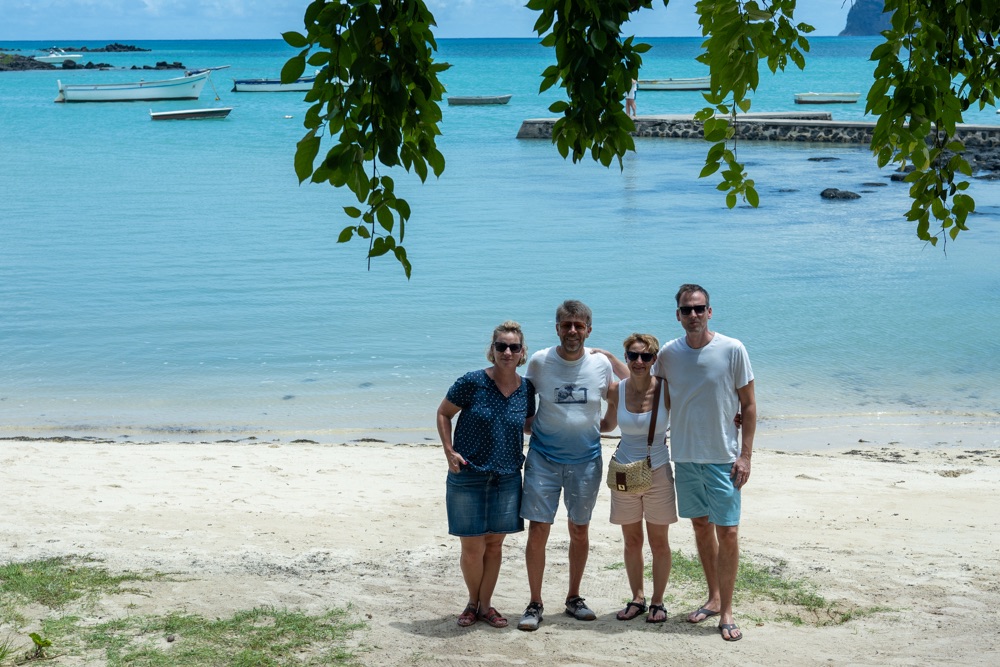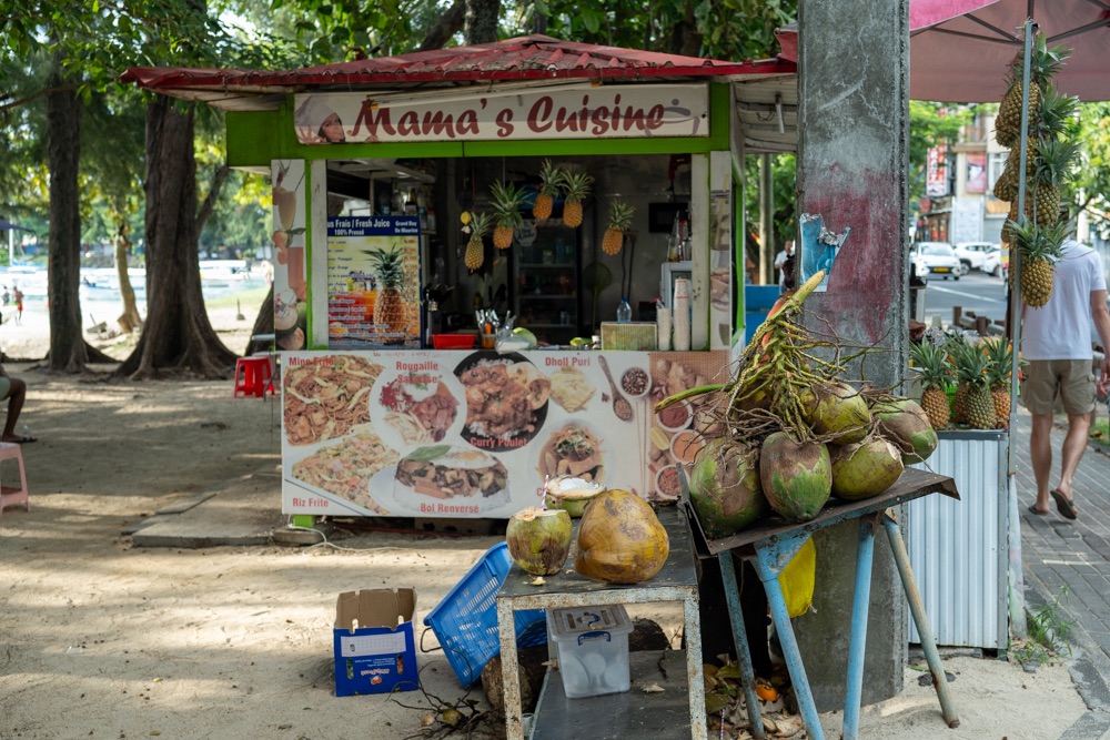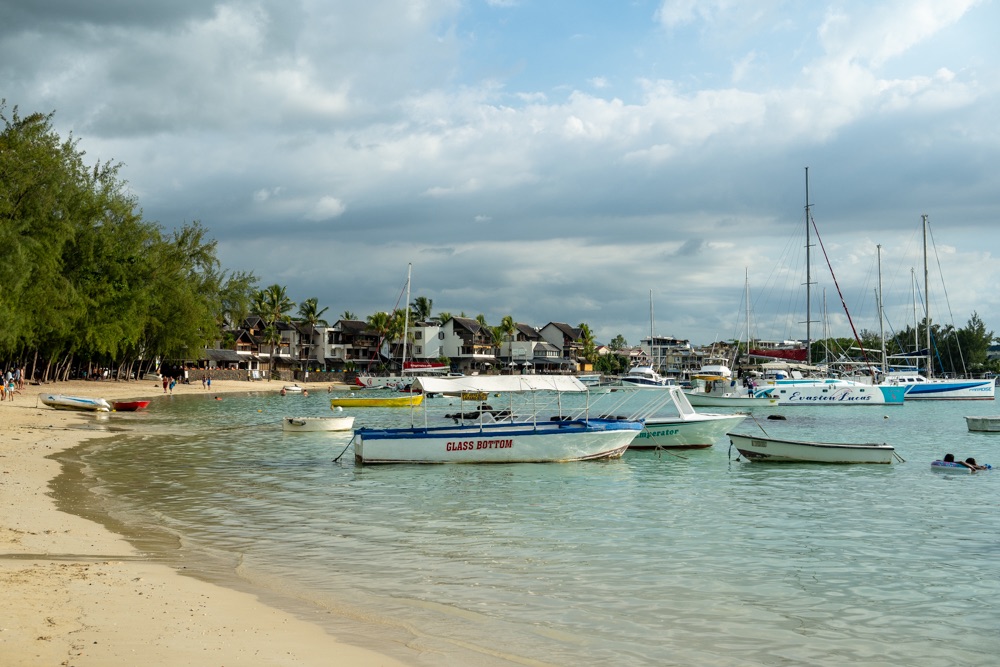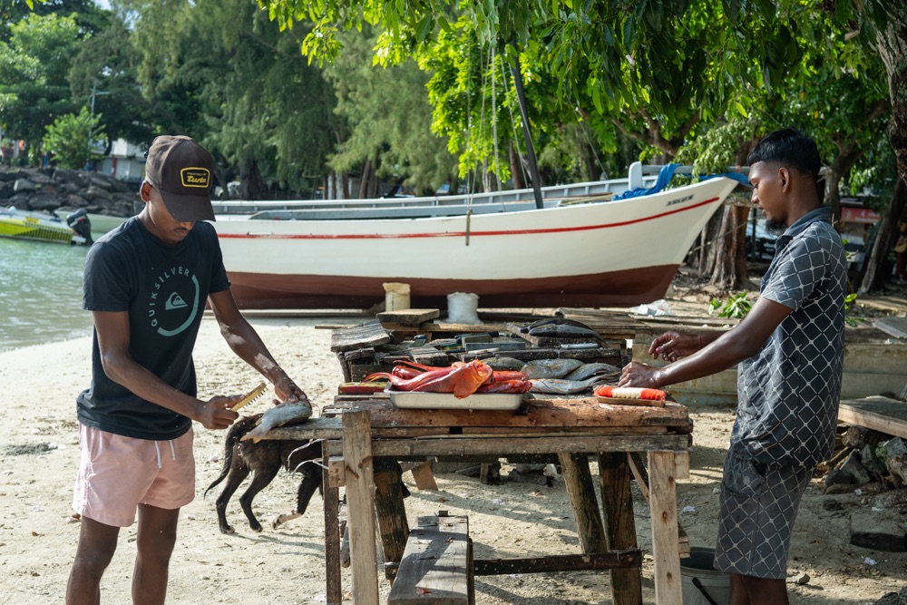 Délután kettő körül aztán lefújtuk a sziesztát. Összeszedtük magunkat, leráztuk a homokot, és úgy döntöttünk, hogy a nap hátralévő részében még csavargunk egy kicsit a környéken. Elvégre Mauritius túl szép ahhoz, hogy csak egy helyben üljünk. Az északi partszakaszon már háromszor elmentünk a Grand Baie (Nagy Öböl) mellett, gondoltuk ma meg is állunk. Az öbölben “parkoló” színes halászhajók, valamint a helyiek, ahogy a parton élik a hétköznapjaikat: pecázó családok, halászok a hálóikkal és csónakjaikkal, valamint a halat pucoló fiatal srácok, akik aztán az éttermeknek adják le a napi fogást, lepikkelyezve és kibelezve. Padra kiült idősek, ahogy beszélgetnek a mindennapi dolgokról, mellettük pedig a part mentén fürdőző gyerekek és gazdátlan kutyusok egyaránt. Közben pedig a part és út közötti szakaszon kirakott bódékból falatozók, néhányuk csinosabban, láthatóan munkából jövet, némelyek meg lazábban.