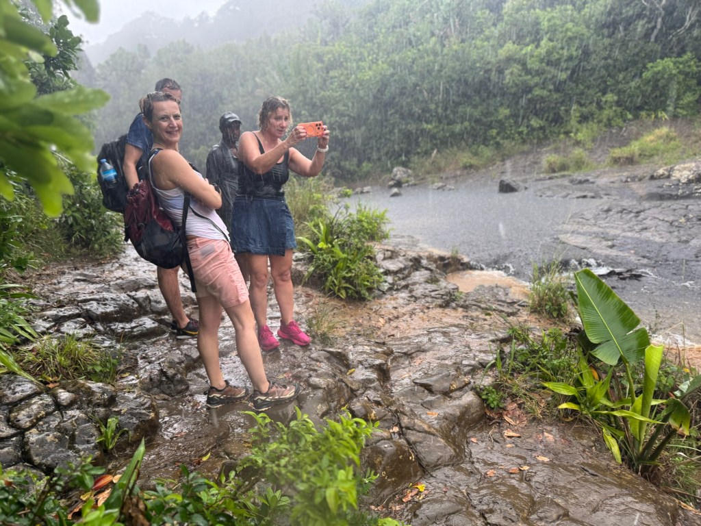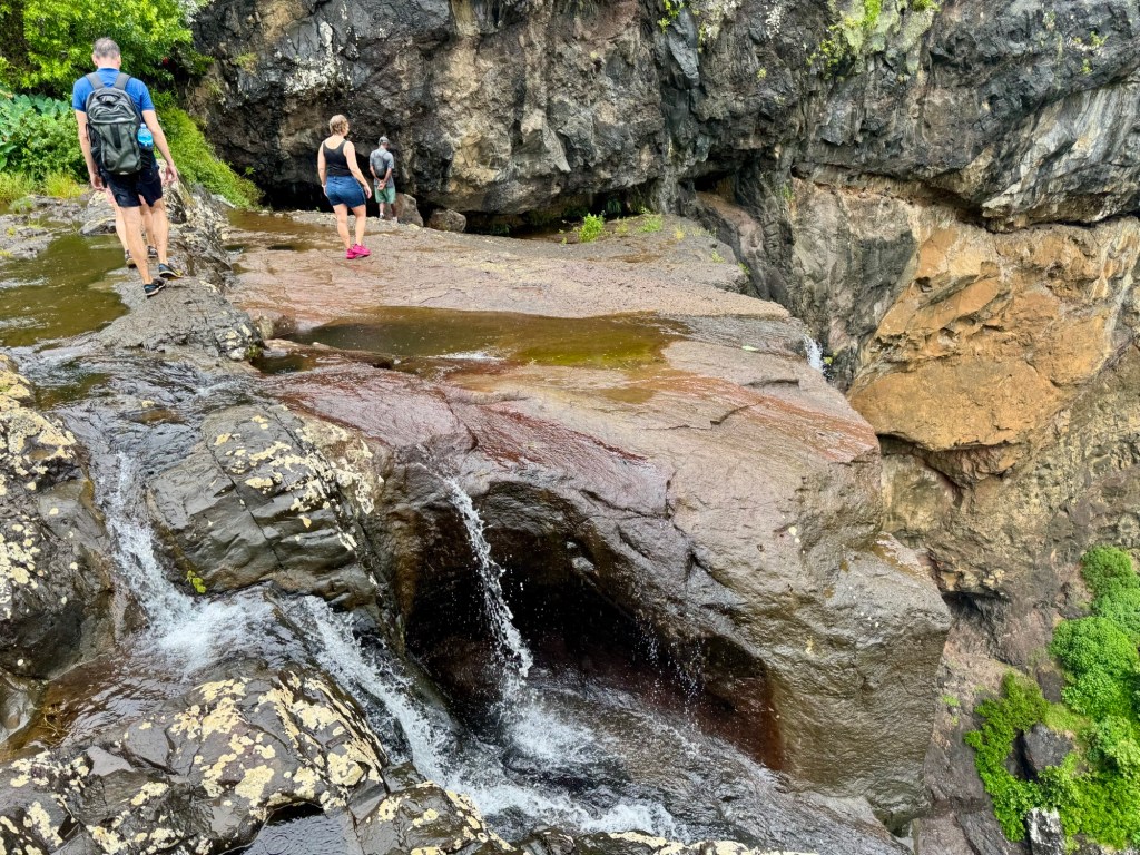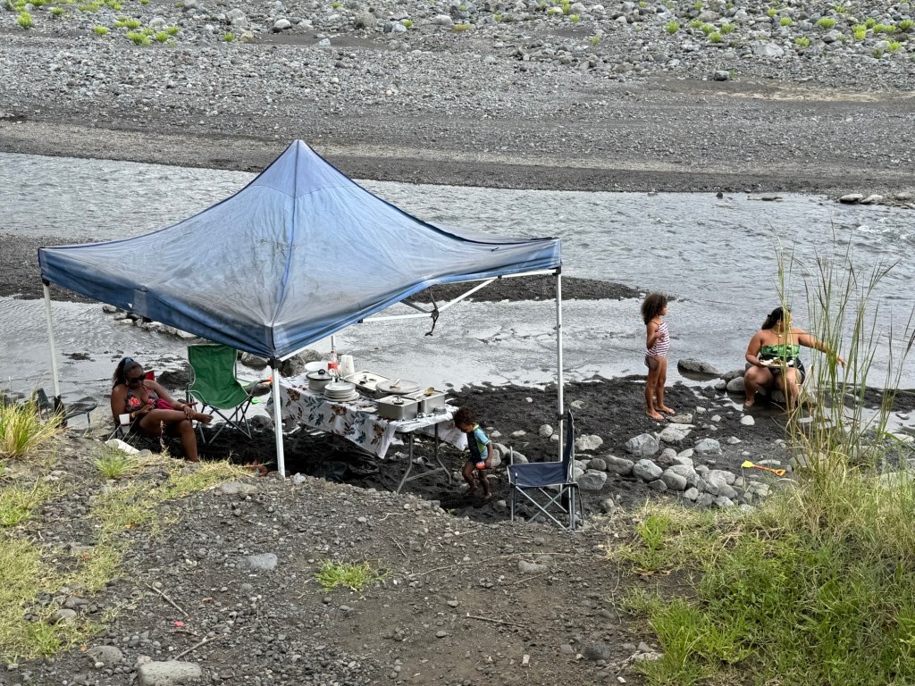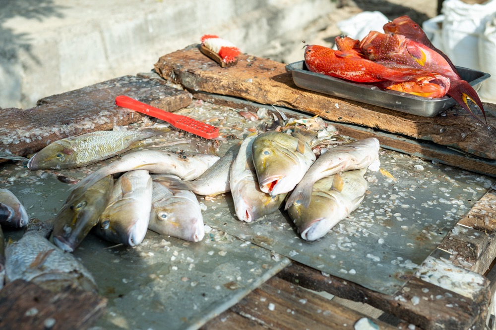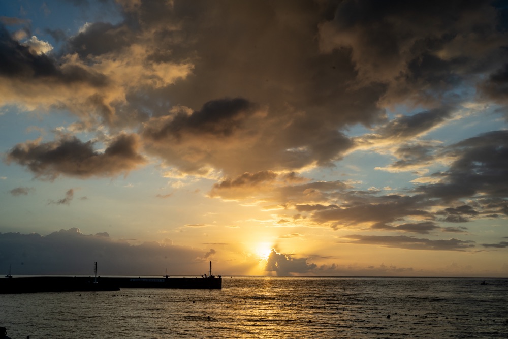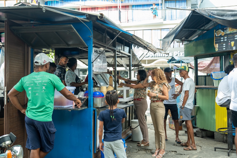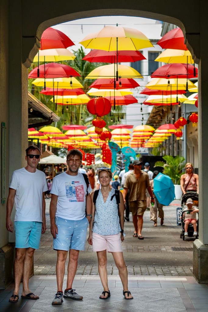 Délután kettő körül aztán lefújtuk a sziesztát. Összeszedtük magunkat, leráztuk a homokot, és úgy döntöttünk, hogy a nap hátralévő részében még csavargunk egy kicsit a környéken. Elvégre Mauritius túl szép ahhoz, hogy csak egy helyben üljünk. Az északi partszakaszon már háromszor elmentünk a Grand Baie (Nagy Öböl) mellett, gondoltuk ma meg is állunk. Az öbölben “parkoló” színes halászhajók, valamint a helyiek, ahogy a parton élik a hétköznapjaikat: pecázó családok, halászok a hálóikkal és csónakjaikkal, valamint a halat pucoló fiatal srácok, akik aztán az éttermeknek adják le a napi fogást, lepikkelyezve és kibelezve. Padra kiült idősek, ahogy beszélgetnek a mindennapi dolgokról, mellettük pedig a part mentén fürdőző gyerekek és gazdátlan kutyusok egyaránt. Közben pedig a part és út közötti szakaszon kirakott bódékból falatozók, néhányuk csinosabban, láthatóan munkából jövet, némelyek meg lazábban.