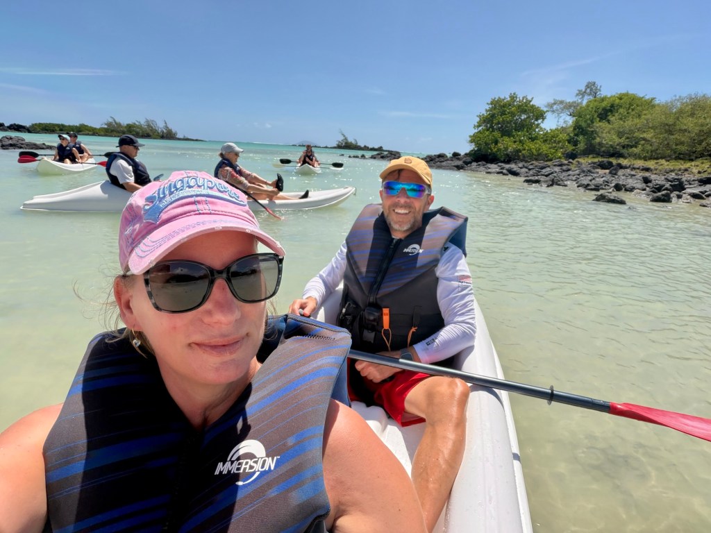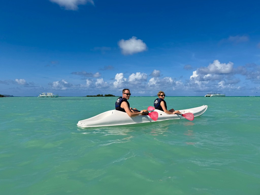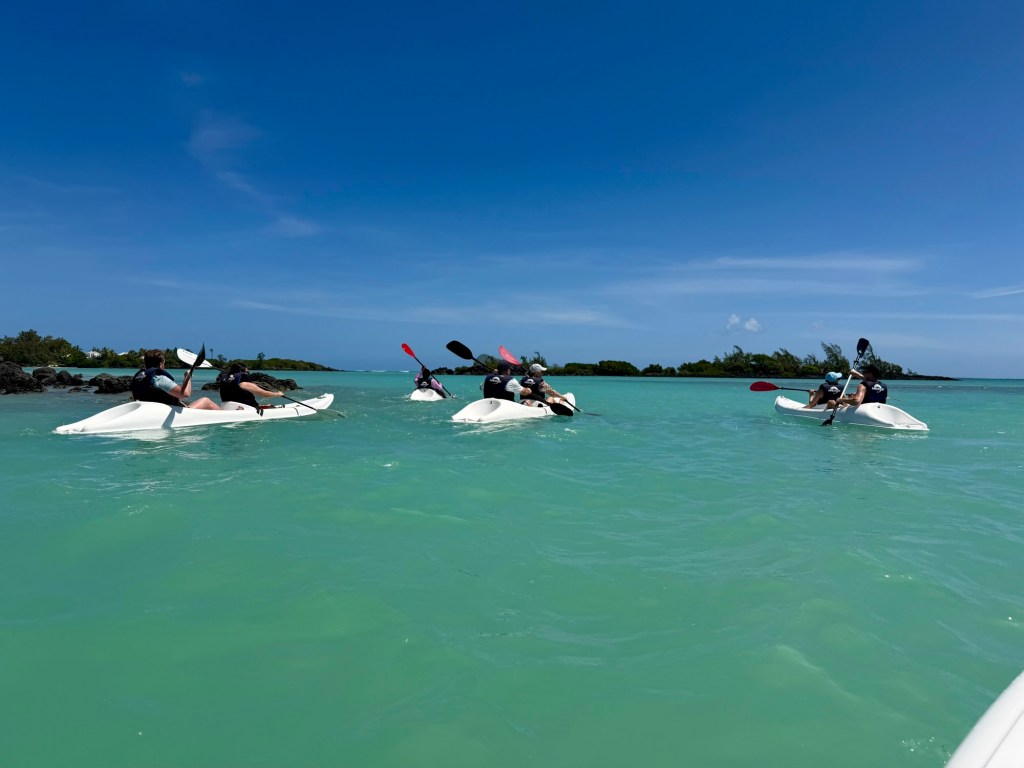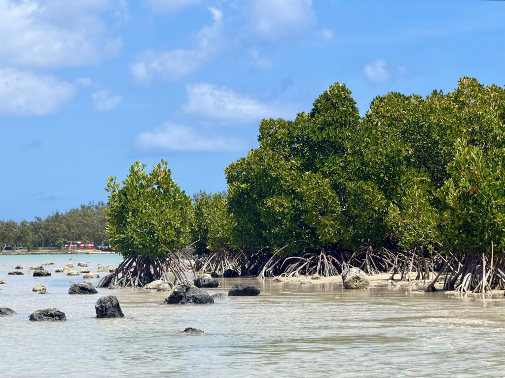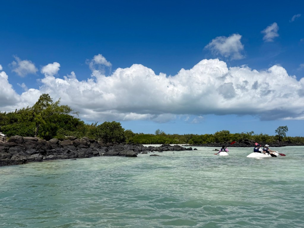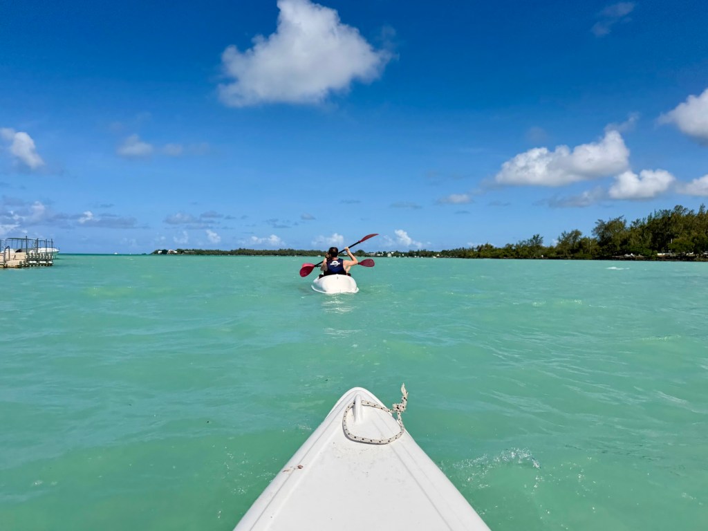 A szálloda szervezett egy kajaktúrát a közeli mangrove erdőbe, amire korábban már szerettünk volna becsatlakozni, de nem volt hely, ezért a mai csapatot tudtuk erősíteni. Ez a program végül sokkal másabb volt, mint vártam. A mangrovék világa mindig is tetszett. Itt a víz néhol annyira alacsony volt, hogy ki tudtunk szállni a kajakokból, és a bokáig érő, langyos vízben gázolva fedeztük fel a növényvilágot. Máshol viszont mélyebb szakaszokon csendesen siklottunk a türkizkék óceán hol homokos, hol köves talaja felett. Elképesztő ez az ökoszisztéma, mintha a szárazföld és a tenger folyamatosan szkanderezne egymással.