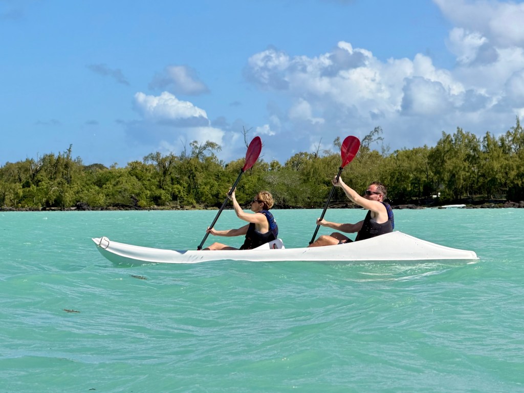 Visszavonultunk a kedvenc pálmafáink alá, és a délutánt váltott fürdőzéssel és pihenéssel töltöttük. A 30 fokos óceánban lebegve megint megállapítottuk, hogy Mauritiusnak ez az arca – a nyugalom és a végtelen kék – legalább olyan izgalmas, mint a dzsungel vagy a cukorgyár.