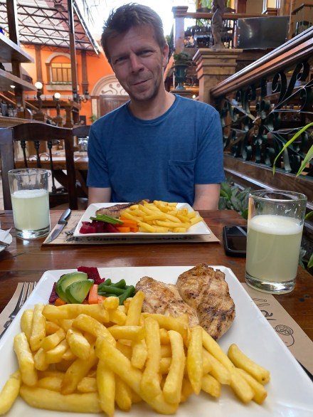 Reggeli után hívtunk egy Ubert, akivel elvitettük magunkat a belvárosi fő térre, a Plaza de Armas-ra. A fejünkben volt, hogy néhány dolgot el kell intézzünk mielőbb: első egy kávé, aztán kellett kp-t szerezni, mert sok helyen nem lehet kártyával fizetni. Na és kellett vegyünk egy SIM kártyát. Kellemesen csalódtam magamban, mert tegnap este érzékelve, hogy itt tényleg senki nem beszél angolul csak spanyolul megpróbálkoztam az elmúlt fél éves spanyol tanulmányaimat előrántani, és rájöttem, hogy semmit nem tudok és semmit nem értek. Ma reggelre viszont lement a stressz és előjöttek a szavak. A SIM kártya ügyintézésnél is hasznát vettük meg a kp felvétnél is, aztán később az étteremben is.