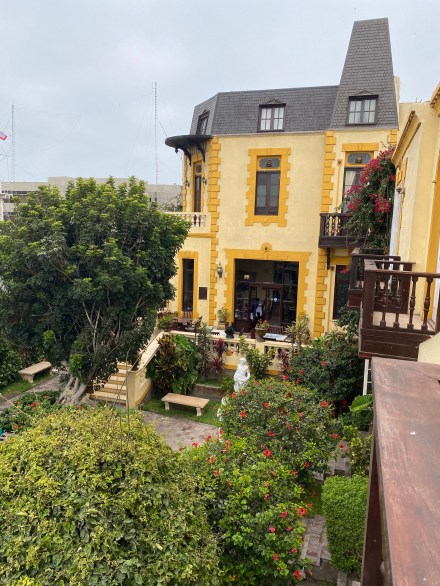 A kis szobánkhoz két terasz is tartozik, egyik az utcára néz, másik a belső kertre. Biztonságos résznek tűnik, pláne hogy mellettünk van a perui tengerészeti központ. Este mire a helyünkre kerültünk már nem akartunk kimozdulni. Ráadásul akkor nem is nagyon tudtuk még felmérni a sötétben, hogy milyen a környék, csak annyit észleltünk, hogy a szállásunkat biztonsági őr védi.