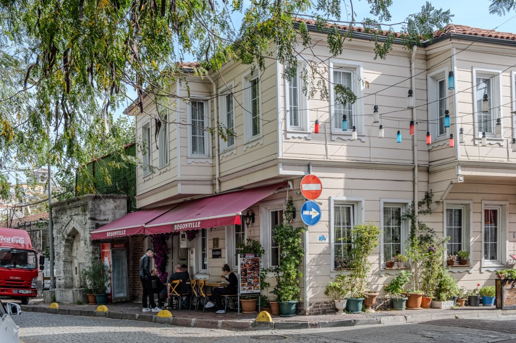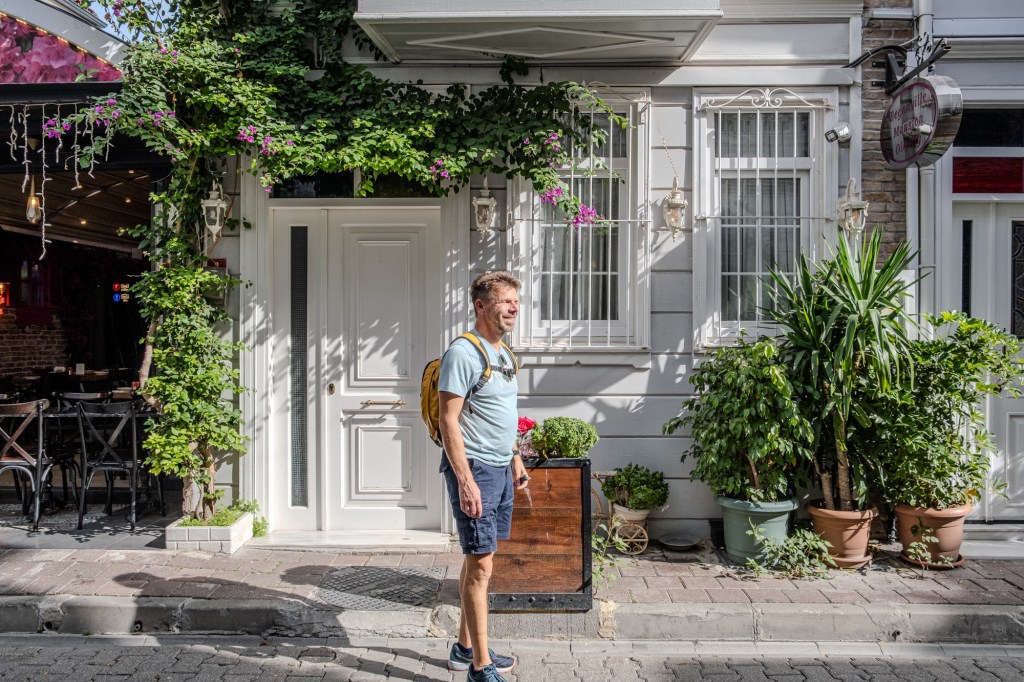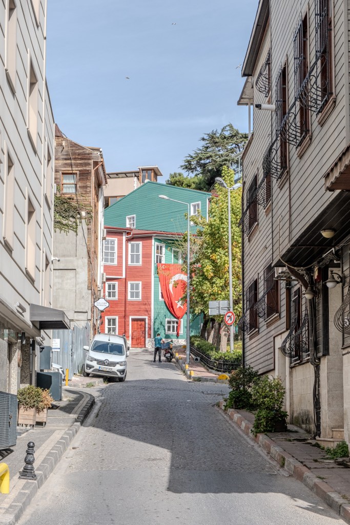 A szállásunk az európai részen az óvárosban, Fatih negyedben van. Egy nagyon helyes 6 szobás boutique hotel 3 emeletén (szintenként csak két szoba), terasszal, izgalmas kilátással.