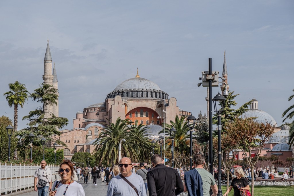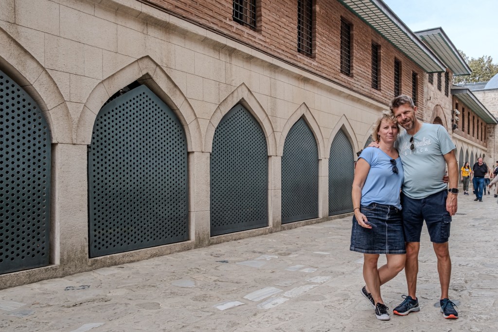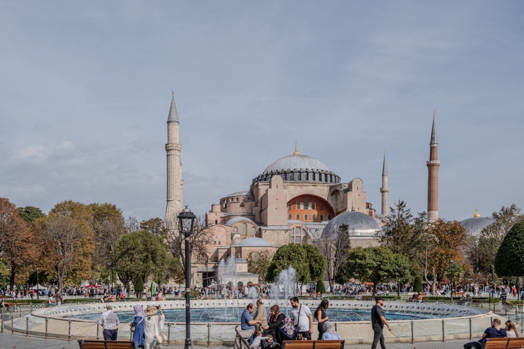 2, Ayasofia mecset, más néven Hagia Sophia bizánci építésű ortodox bazilika, melynek érdekessége, hogy 1934-ig mecsetként használtak, majd egészen 2020-ig múzeumként. 2020 júliusa óta azonban megint mecsetként funkciónál. Csak kívülről néztük meg és jártuk körbe, pont a fent említett helytelen öltözékünk miatt. Ez a mecset belépődíjas, már otthon nézegettem a neten, hogy meg tudom e venni előre online a jegyet, de csak idegenvezetéssel összekapcsolt jegyeket találtam, így gondoltam ezt majd megoldjuk itt.