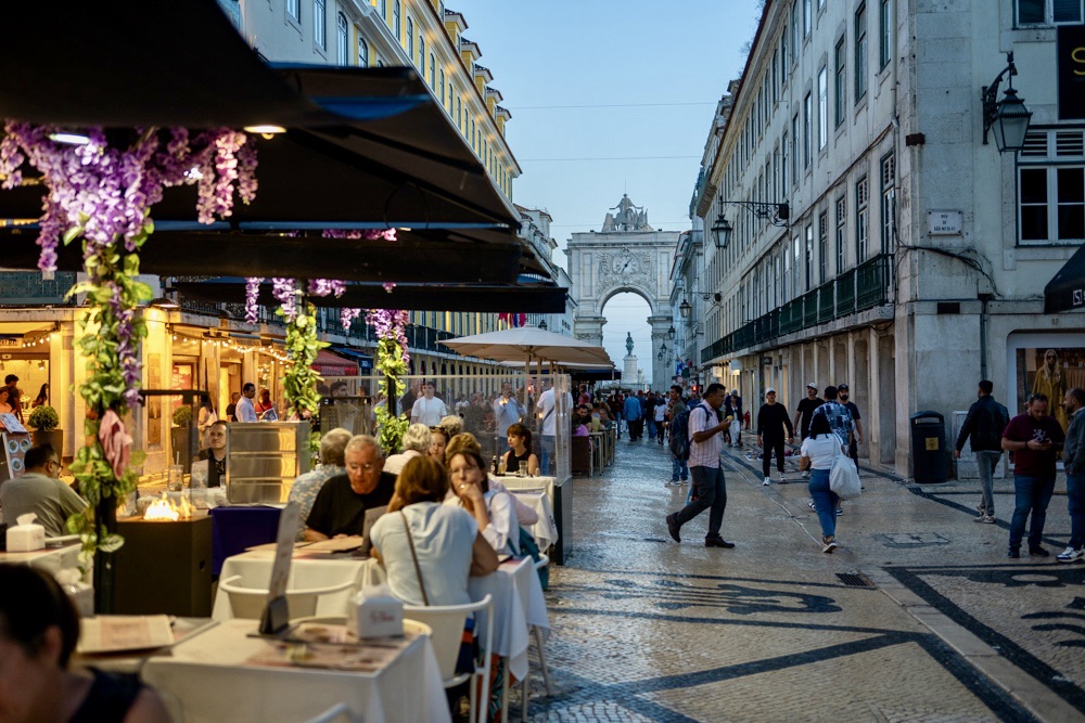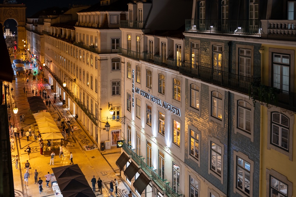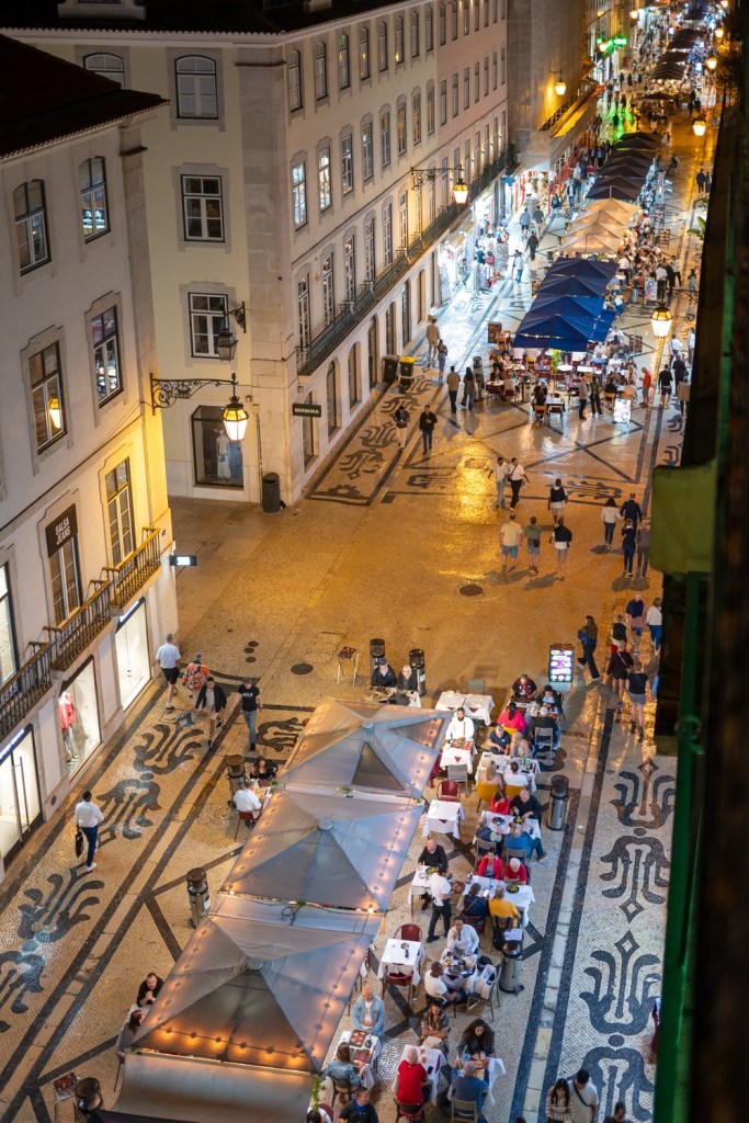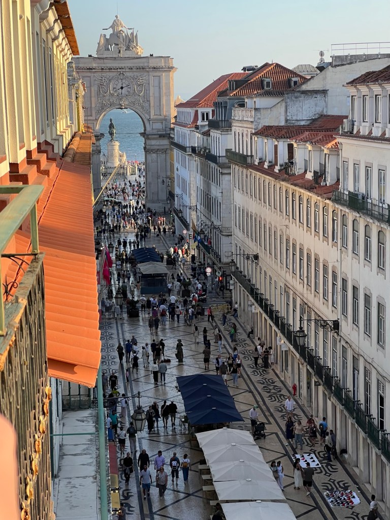 A két szobás, konyhás apartman mindkét szobája szűk kis terasszal “felszerelt”, ahonnan a sétáló utcára látunk ki, valamint a nem túl távoli Tejo folyó tölcsértorkolatára, amely a Rua Augusta boltívén túl terül el. Innen indultunk el este felfedezni a közvetlen környékünket, valamint vacsorázni.
