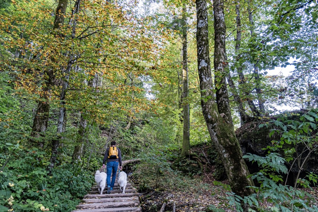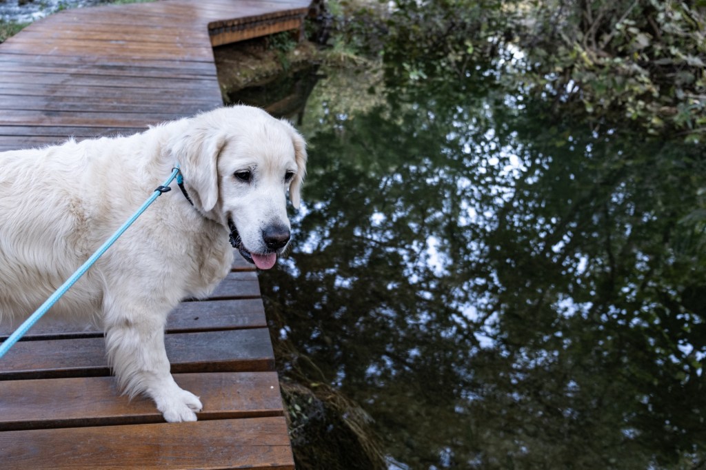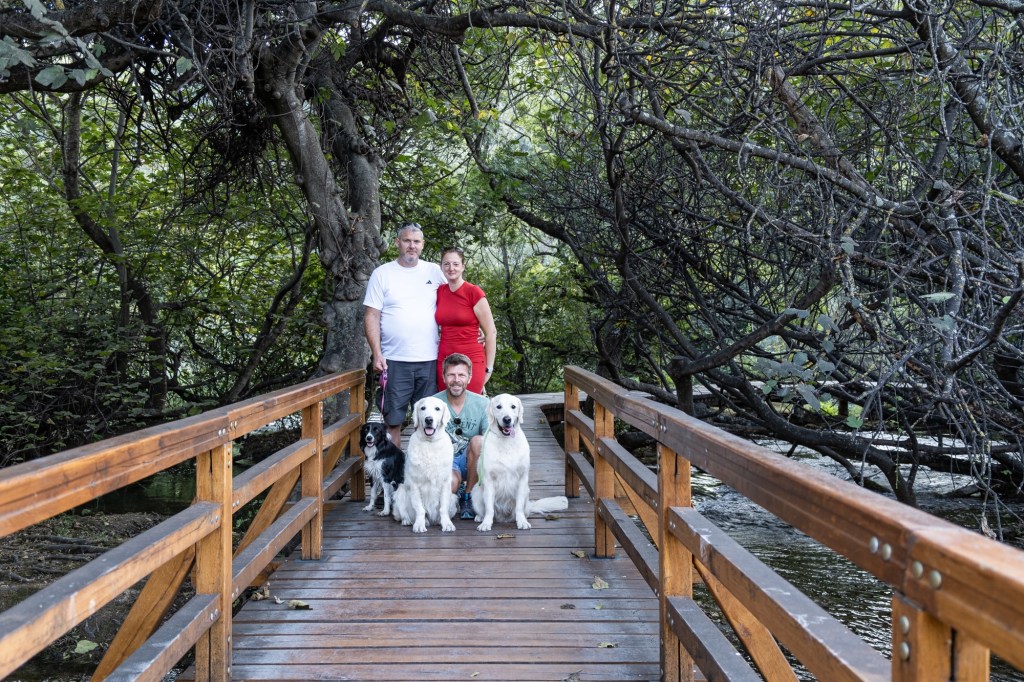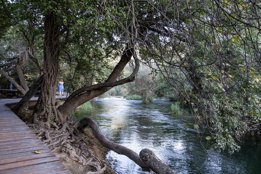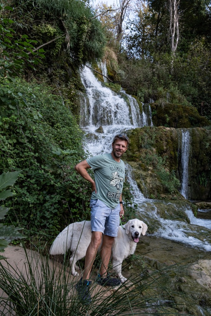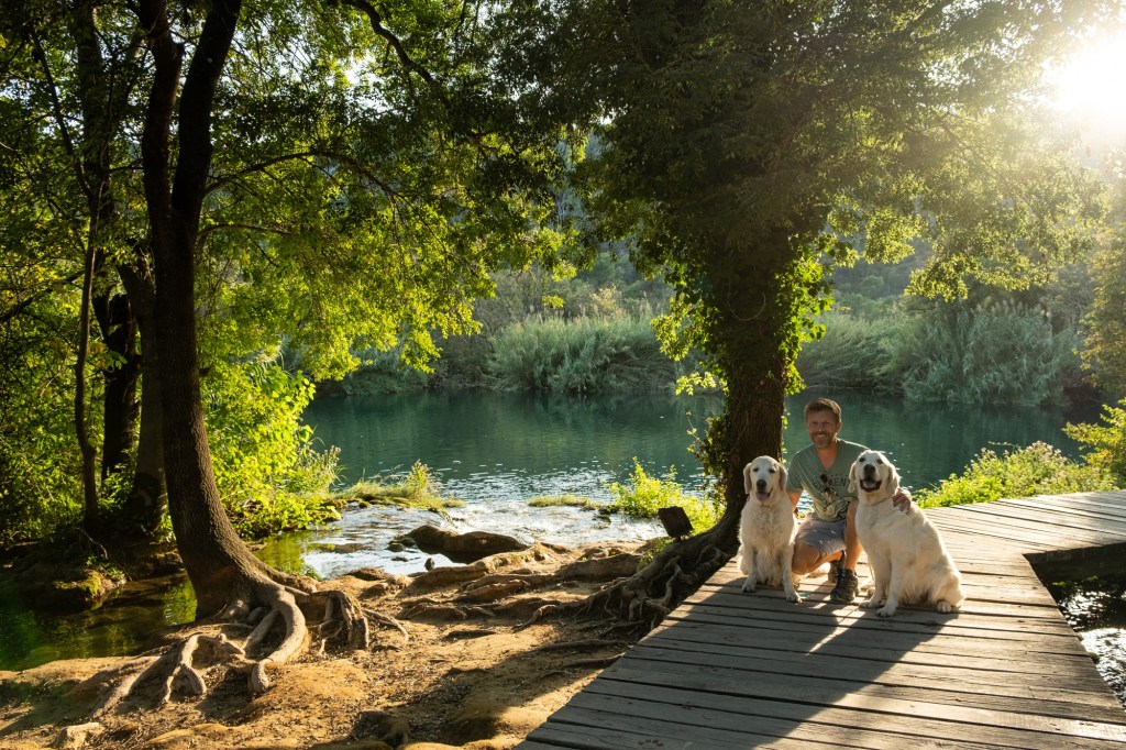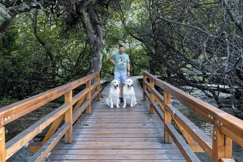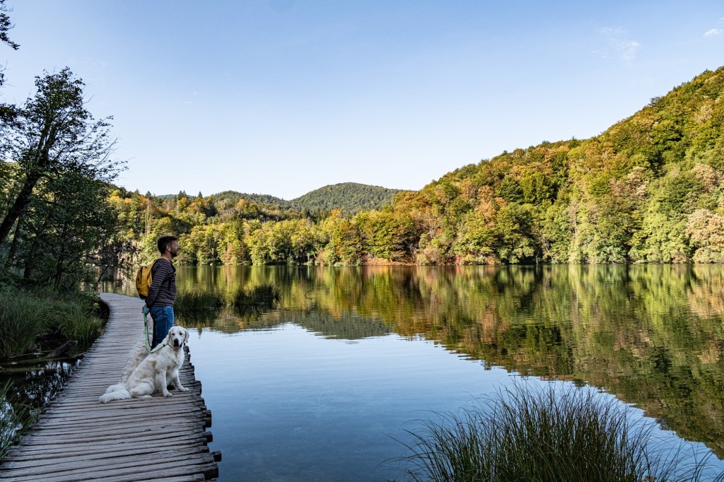 A bosnyák-horvát határon legalább nem volt sor! Sőt, jó helyen tudtunk parkolni a Nemzeti Parknál és még nem volt ott sem tömeg. Egy négy órás túrát csináltunk, 8 kilométert mentünk. Több szempontból is jól sikerült, hogy ilyen korán kellett érkezzünk: ugyan reggel még kicsit csípős volt az idő, de a 25 fokban, csudi napsütésben a kutyáknak már sok lett volna ez a túra. Egyértelműen kevesebben vannak nyitáskor, kényelmesebben lehetett menni a kiépített pallókon.