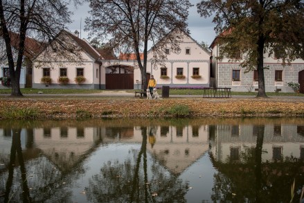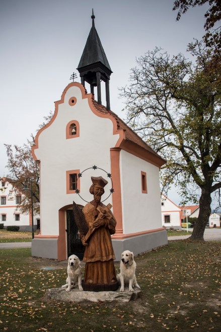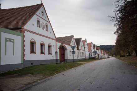 “Holasovice parasztbarokk stílusban épült lakóházairól nevezetes, melyek a XIX. század hetvenes éveiben épültek. Hasonlóan a magyarországi Hollókőhöz, az itt élő mintegy 140 fős lakosság élő közösséget alkot, a falu az itteniek állandó lakóhelyéül szolgál. Holasovice ennek, valamint a szépen karban tartott épületegyüttesnek köszönheti, hogy 1998-ban felkerült az UNESCO Világörökségi listájára. A faluban lévő 120 épület közül 23 műemlékvédelem alatt áll, melyek egységes egészként egy skanzent alkotnak. A csúcsos homlokzatú, stukkódíszítéses lakóházakon kívül ólak, pajták, istállók, magtárak, kapuk és különféle kerítések tartoznak a településhez. A falu épségét annak köszönheti, hogy távol esik a fő közlekedési csomópontoktól, illetve a második világháború után német nyelvű lakosságát kitelepítették, s csak az 1990-es években népesítették be ismét.” (Írja az utazom.com.) A faluban valószínűleg elsősorban nyáron, netán hétvégenként vannak inkább turisták. Ma – pedig nem mentünk korán – az egész faluban csak mi voltunk nem helybéliek. És a helyiek se kavartak sok vizet, kb. 2 embert láttunk. Ideális volt.