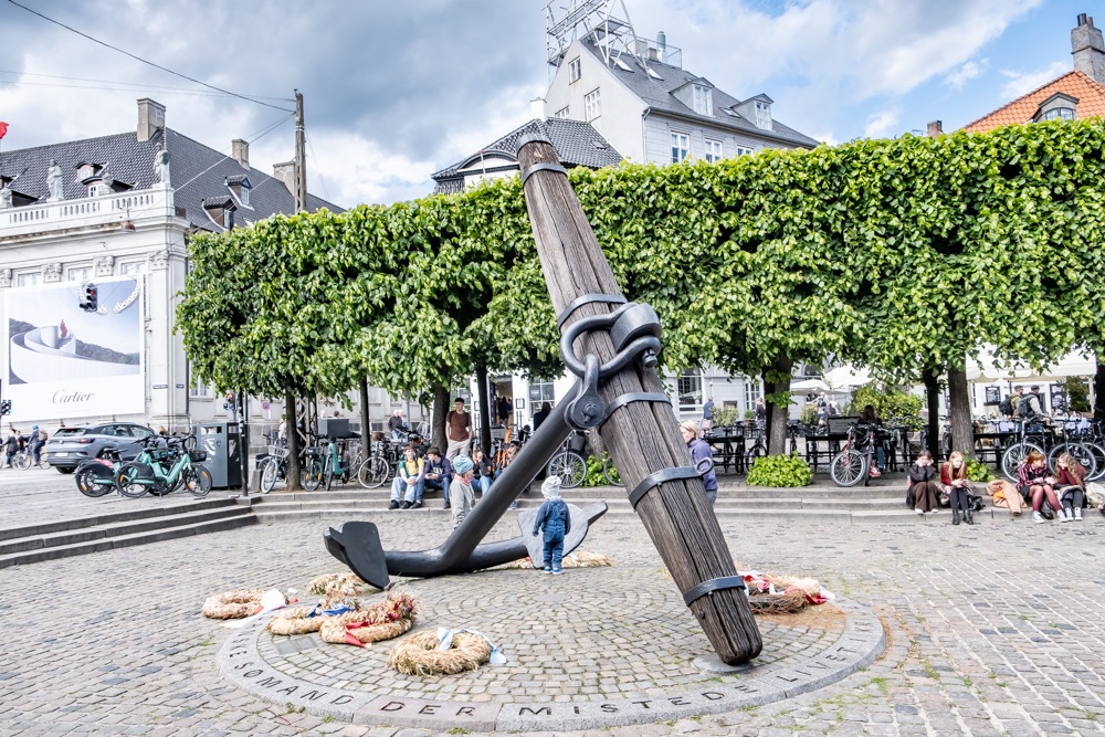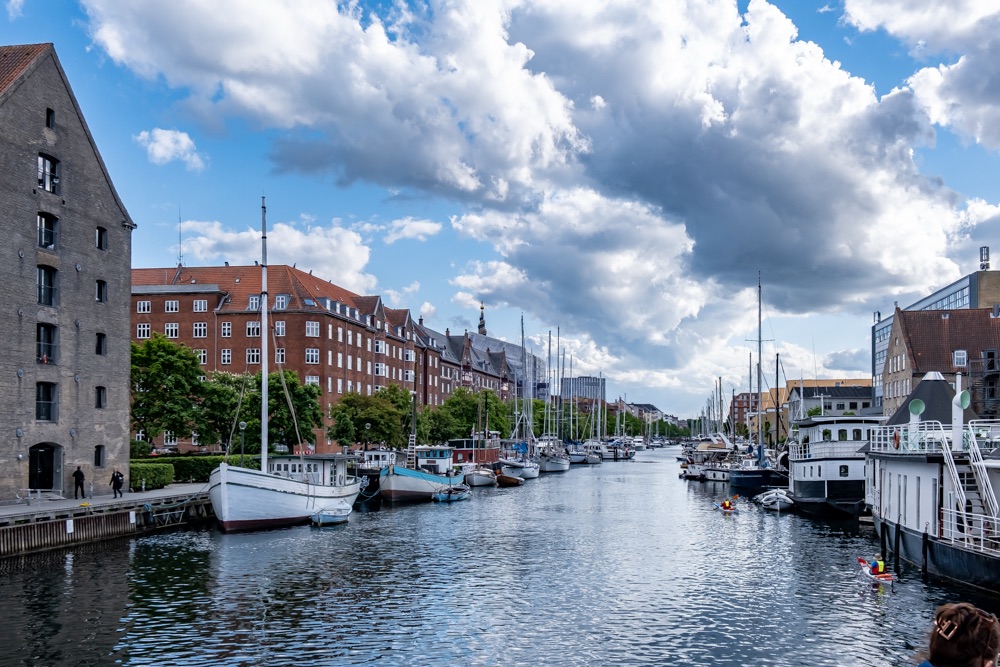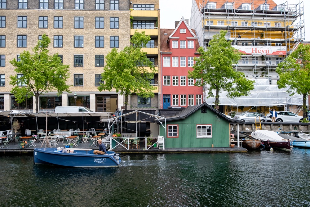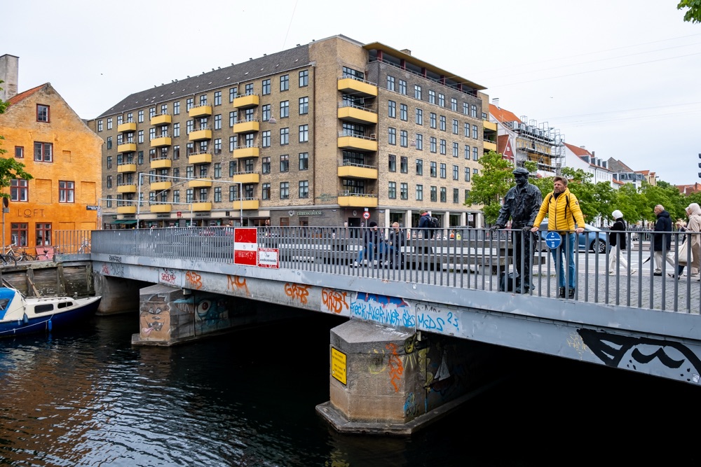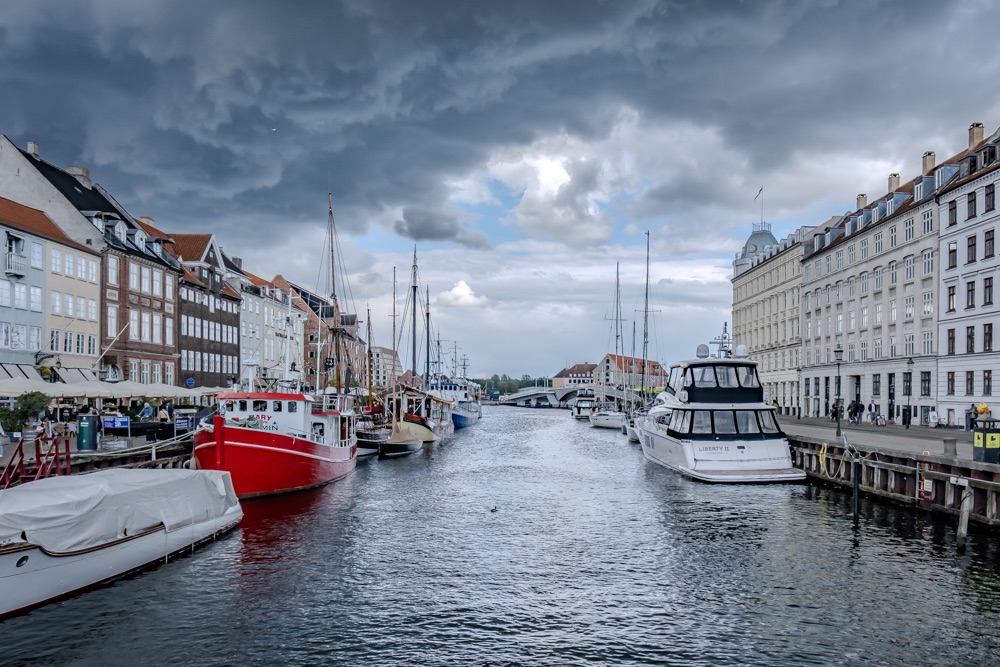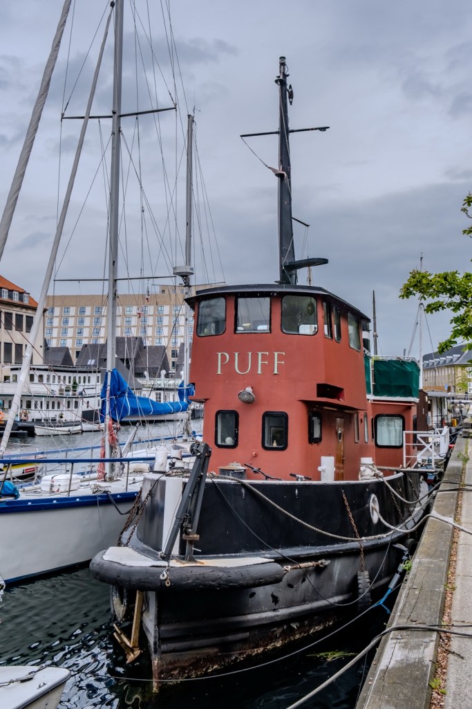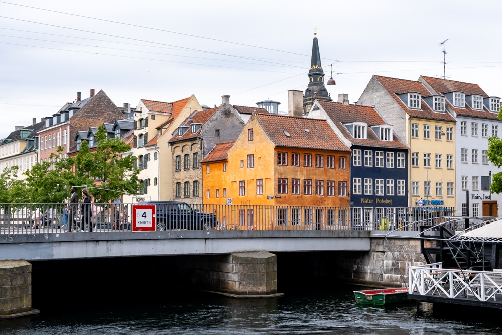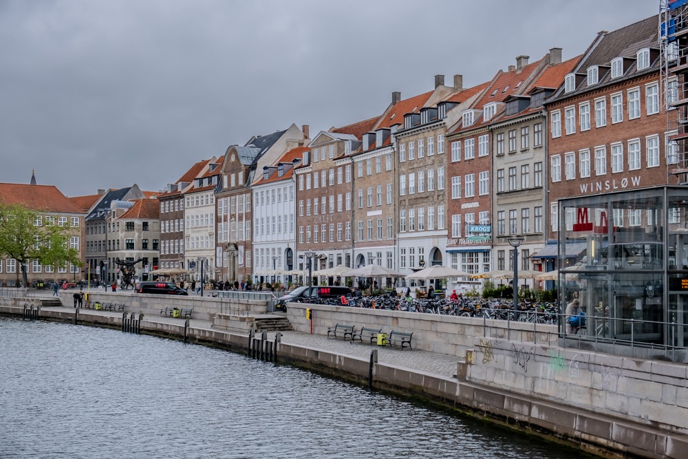 Az első délutánra nem volt konkrét program, csak a közelben lévő belvárosi hangulatos részt akartuk felfedezni, azon belül is a Nyhavn-t, amely a város fő látványosságai közé tartozik. Nyhavn jelentése új kikötő, ami persze már nem új. Anno 1671-ben V. Keresztély király kérésére egy mesterséges csatorna kiásásával kikötőt alakítottak ki, és 1673-ban meg is kezdte működését, mint kereskedelmi kikötő. Ebben az időben a kikötőben épült házak a kereskedőknek adtak otthont, de a területet tengerészek, kocsmák és nyilvános házak is meghatározták. Az épületeket később felújították, különböző színekre festve számos étteremnek, beülős, iszogatós helynek adnak otthont napjainkban. Erősen turistás hely, ami az árakon különösen meglátszik, de napsütésben csalogató, akár csak egy fagyira. Amíg végig sétáltunk a Nyhavn-on sütött a nap, de már látszott, hogy lesz eső, ami aztán meg is érkezett, de nem tartott tovább 5 percnél. A falatnyi esernyőnket elővettük a táskánkból és tovább sétáltunk.