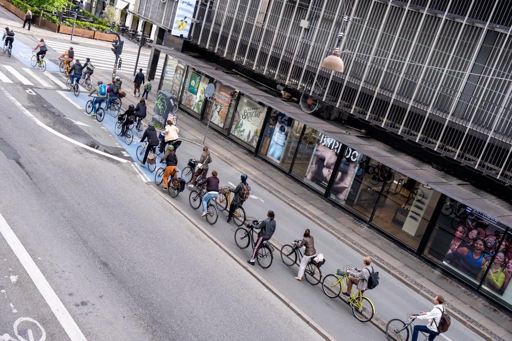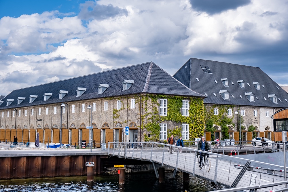 Északra kimentünk a város külsőbb részébe biciklivel, mert az építészünk Dani, mikor meghallotta, hogy Koppenhágába jövünk, egyből volt néhány ötlete, hogy mit nézzünk meg, ő ugyanis mesterképzésre itt járt így ismeri a várost. Tömegközlekedéssel is és bringával is fél órát ígért a térkép, így a biciklit választottuk. Eddig is láttuk, hogy milyen frappánsan működik itt a biciklis élet, de ma még a bőrünkön is tapasztaltuk. Mindenhol (de tényleg abszolút mindenhol) van biciklis út. Van járda a gyalogosoknak, majd biciklis út és aztán az autóút. A bicikliseknek van kb mindenhol elsőbbségük: gyalogossal is és autósokkal szemben is, kivéve ha a piros lámpa épp nem tiltja. Kereszteződésnél a bicikliseknek van külön kanyarodó sáv és közlekedési lámpa is. Néha gyalogosként csak bámulunk, hogy milyen tempóval mennek, akár van a bringán egy kis elektromos rásegítés, akár nincs.