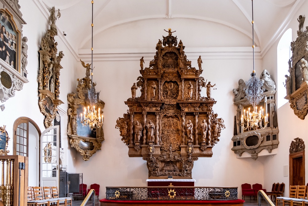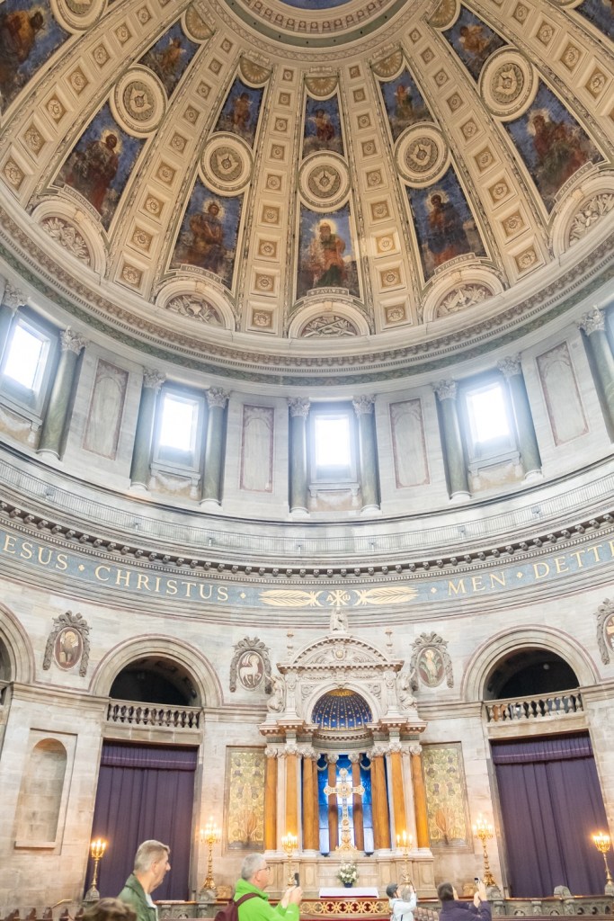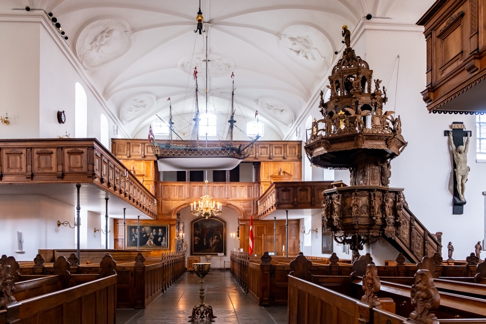 Ahogy elindultunk, az utunk egy olyan templom mellett vezetett, amit tegnap kívülről már megcsodáltunk, és láttuk, hogy most nyitva van. A Holmens Kirke egy XVII. századi templom faragott oltárral, melyet IV. Keresztély király építetett.