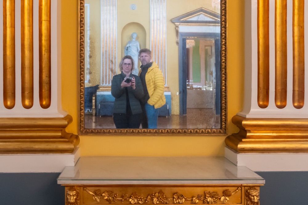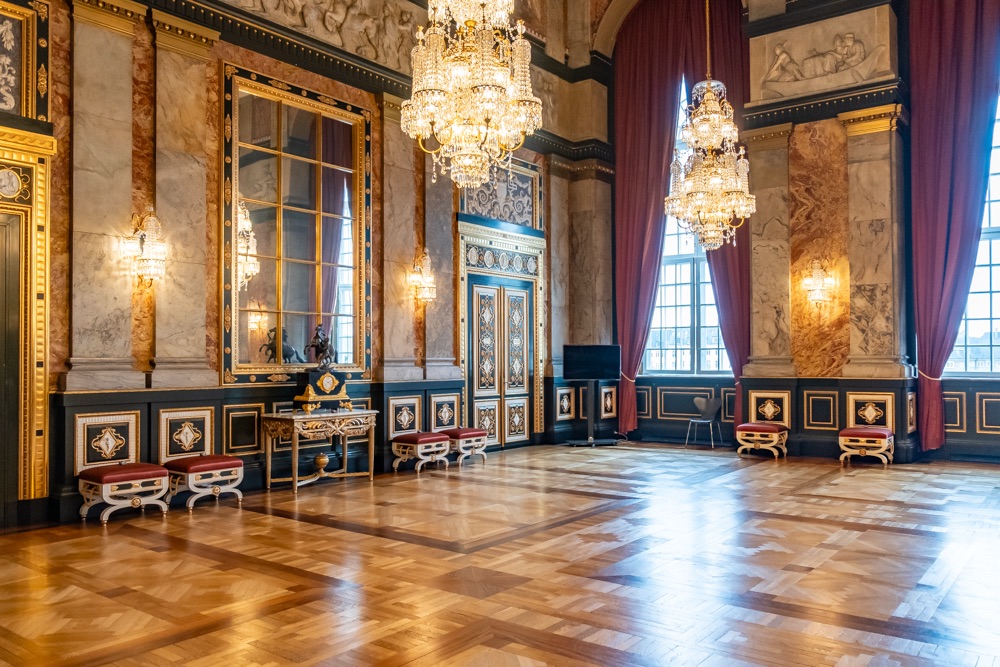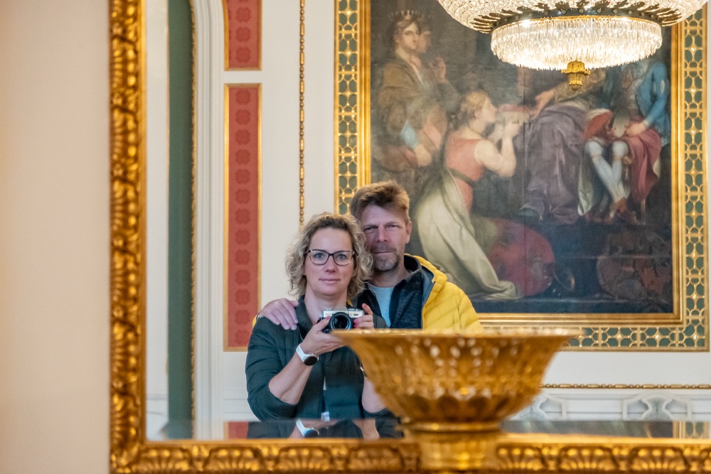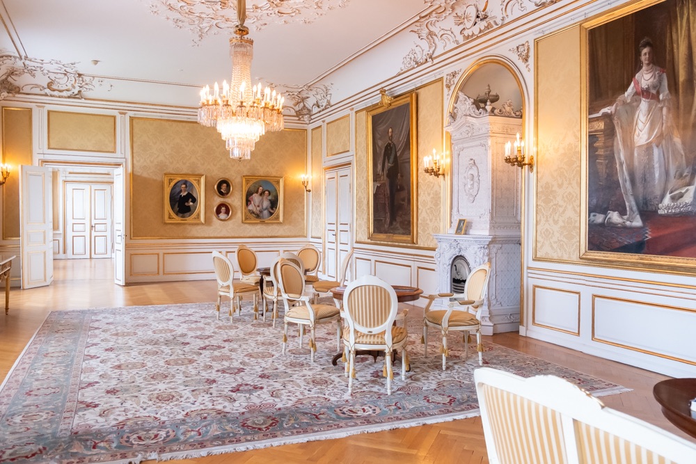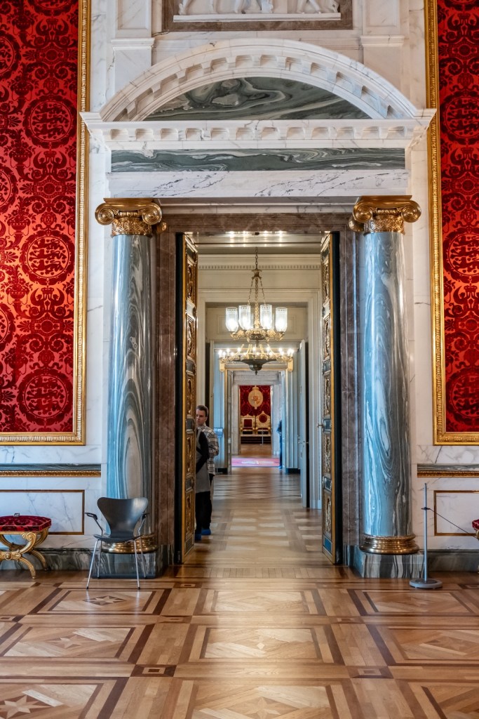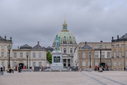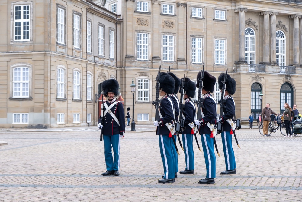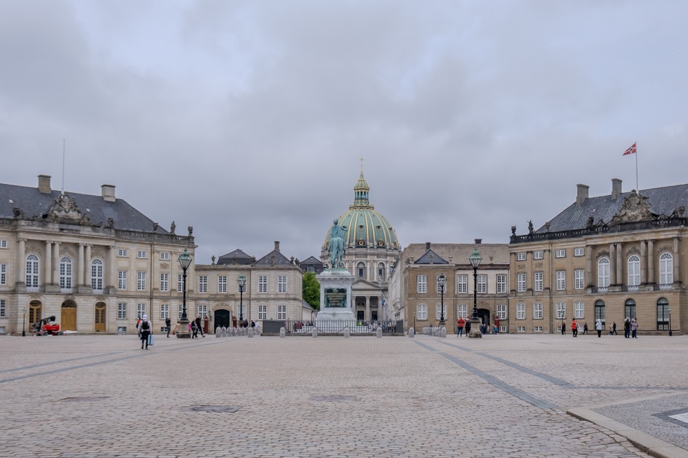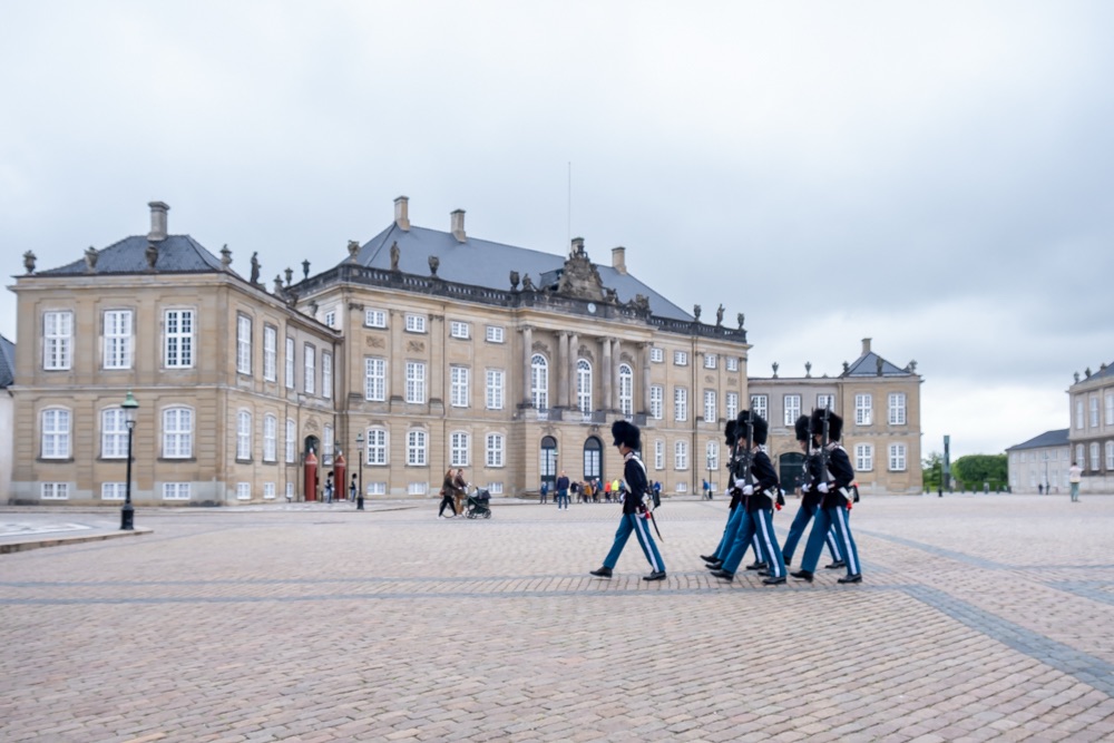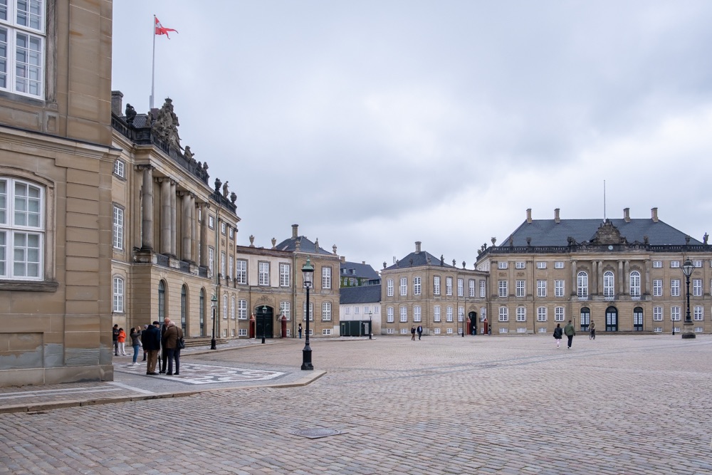 Tíz óra előtt már a palotánál voltunk, ahol egy őrségváltást megnézhettünk mielőtt bejutottunk volna a királyi család téli rezidenciájára Koppenhágában. Az épületegyüttes négy egyforma klasszicista palotából áll körbevéve egy nyolcszögletű teret. Amalienborg eredetileg négy nemesi család számára épült, azonban miután 1794. február 26-án leégett a Christiansborg palota, a királyi család megvásárolta a palotákat és ide költözött. Az évszázadok folyamán számos király és családja lakott a négy palotában.