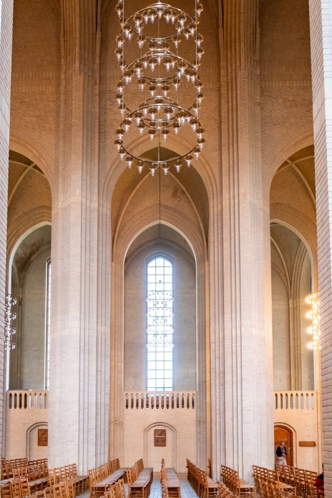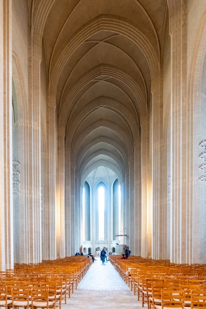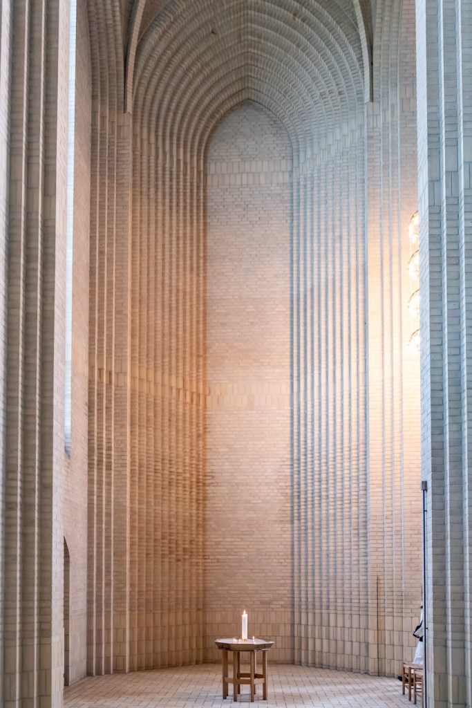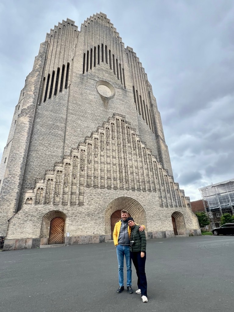 A Grundtvig’s Templomhoz mentünk, amiről Dani azt mesélte, hogy a templom körülbelül 5 millió téglából épült, és minden egyes követ kézzel csiszoltak és csak a hibátlanokat megtartva készült a templom. A kevésbé tökéletes téglákat a környező házak megépítésére használták. A tornác ablakai szándékosan nagyon kevés fényt engednek be, így a templomterem világosnak tűnik, amikor a sötét tornácon belépünk.