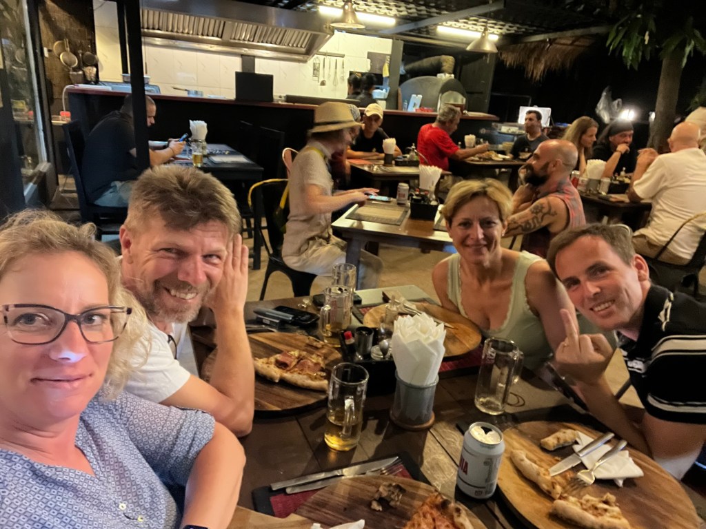 Végül írtó éhesen elindultunk gyalog vacsorázni: két utcával lejjebb láttunk egy olaszt, ami hangulatosnak tűnt. Gondoltuk egy kis gyomorkímélő európai kosztra váltunk. A vacsora mellé még kellemes élő zene is társult.