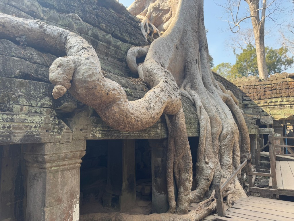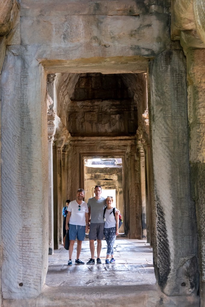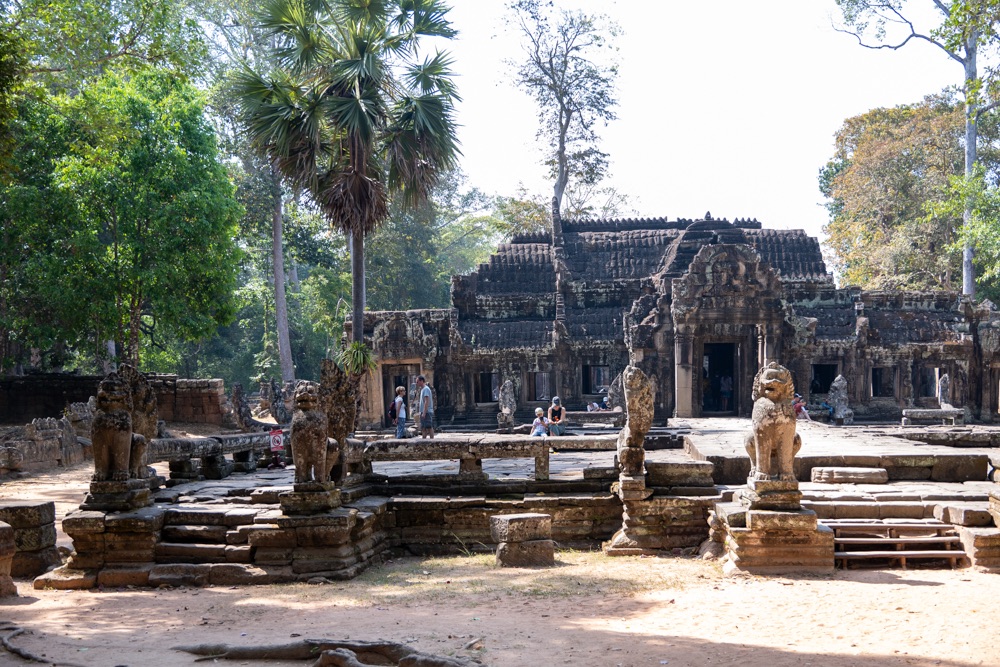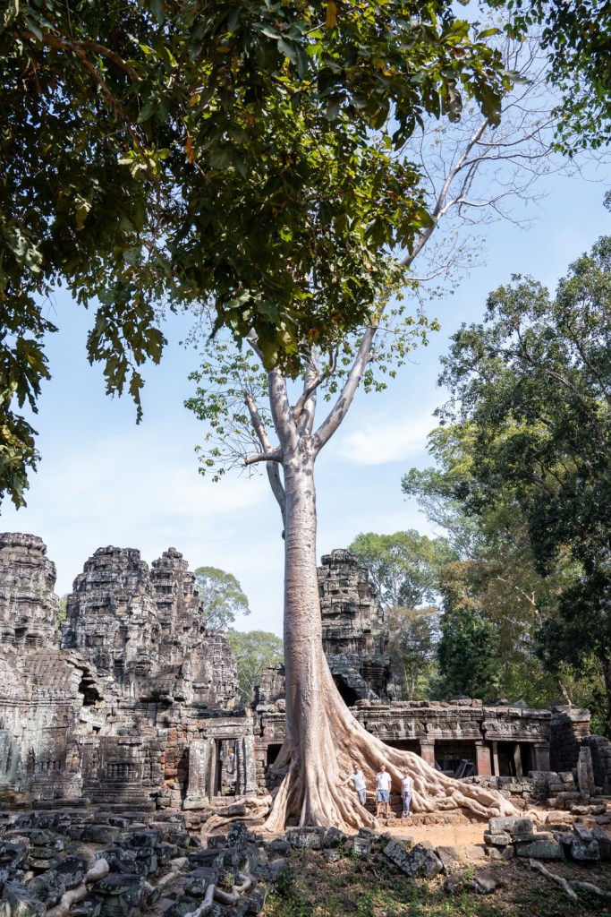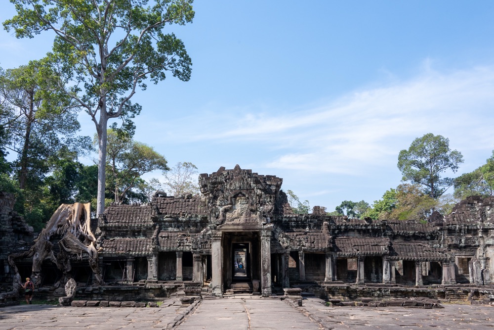 1: Preah Khan: 1191-ben, VII. Dzsajavarman uralkodása alatt épült buddhista templom-kolostor. A vizesárokkal és fallal körülvett egyszerű szerkezetű, de igen díszes, galériákkal udvarokra tagolt épület a király apjának emlékére épült. A templom 56 hektáros alapterületű és nem csupán stílusában de állagát tekintve is Ta Prohmhoz, a király édesanyja emlékének szentelt kolostorhoz (tegnapi negyedik templom) hasonló, de mérete miatt mégis nagyon más.