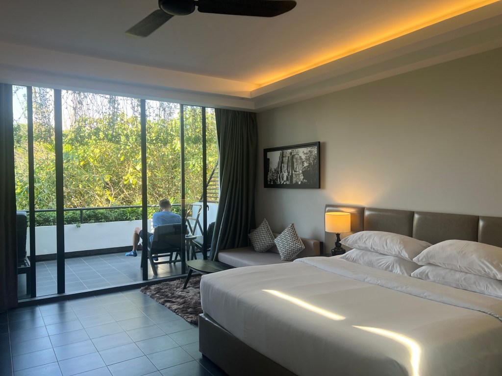 Fél 3-kor már a transzferben ültünk Kambodzsában, hogy a Siem Reap reptéréről eljussunk a szállásra, ami 1 óra volt. Konkrétan 10 órát utaztunk ma, ha a reggeli szállástól való indulástól vesszük az érkezésig, amiben a repülés csak 45 perc volt.