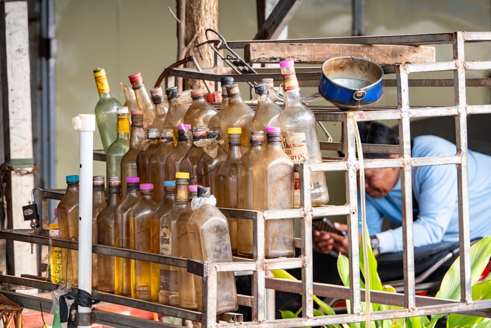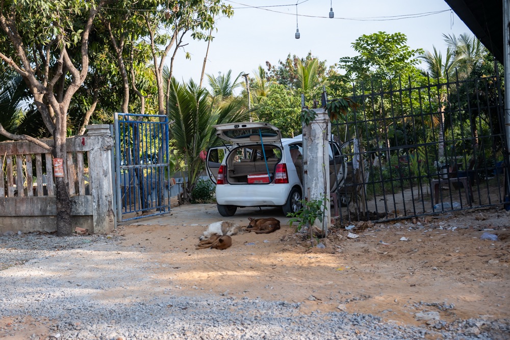 Miután kicsavarogtuk magunkat, ettünk, ittunk, mulattunk, elindultunk gyalog vissza. De közvilágítás a belvárosi utcákban van csak, így ahogy egy kicsit kijjebb kerültünk, jöttek az elhagyatottabb részek, melyeket az utcára kirakott, kóbor vagy nem kóbor kutyák őriztek és ahogy haladtunk a szállás irányába egy-egy ház előtt egyre többen lettek. Furcsa, mert a délutáni városba menet nem így nézett ki, akkor alig láttunk utcán lévő kutyát. Végül jobbnak tűnt hívni egy grab-ot (helyi Uber taxi), amit online telefonról lehet intézni. Kemény 325 forint volt.