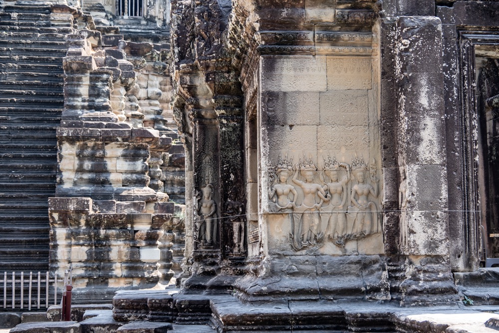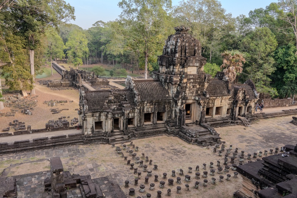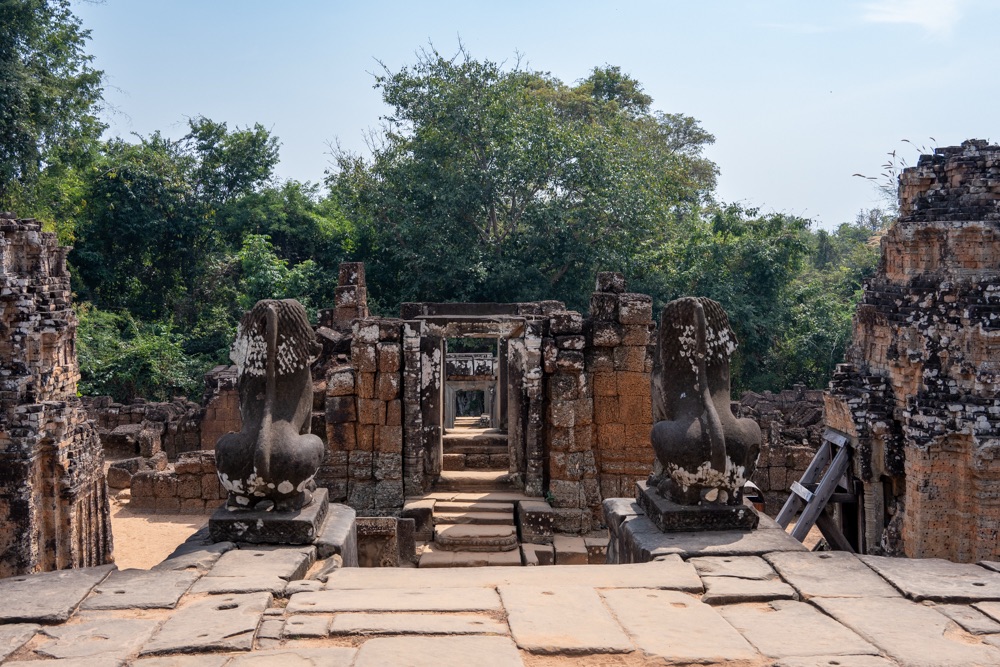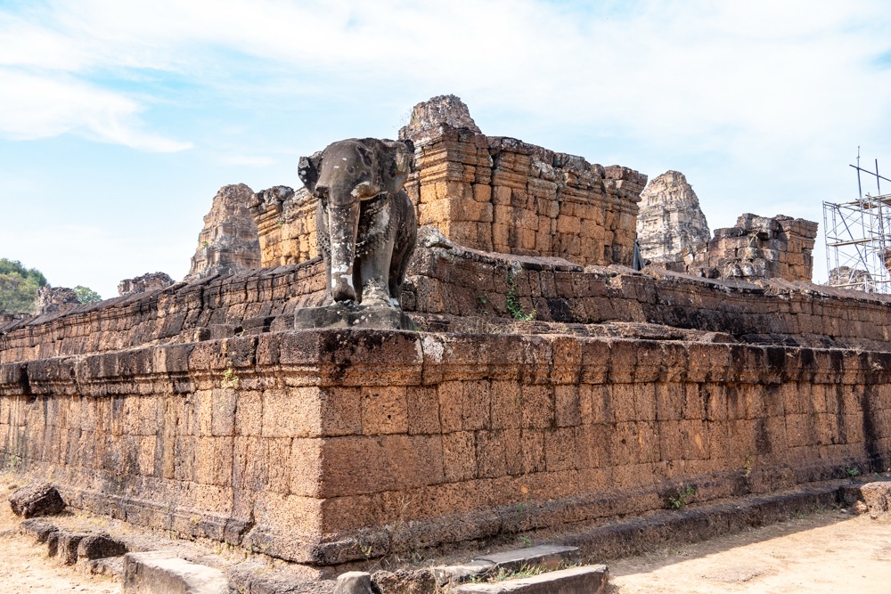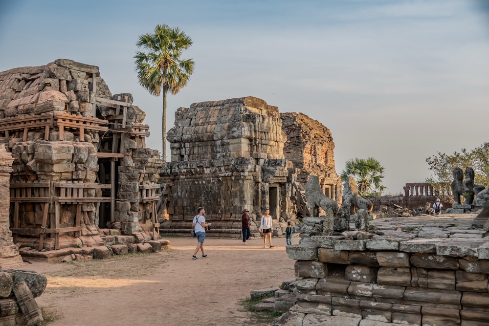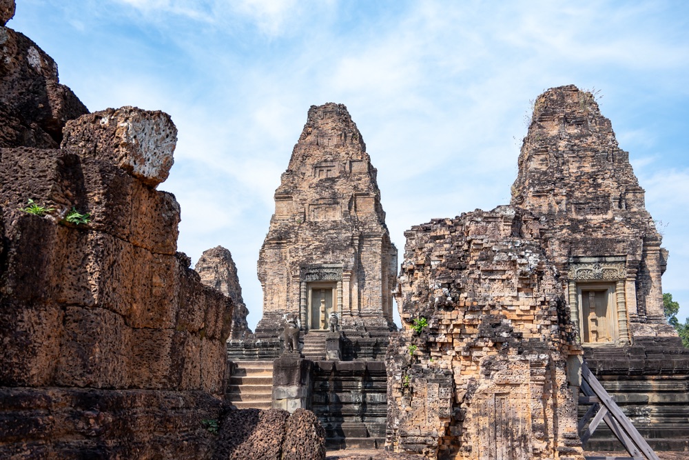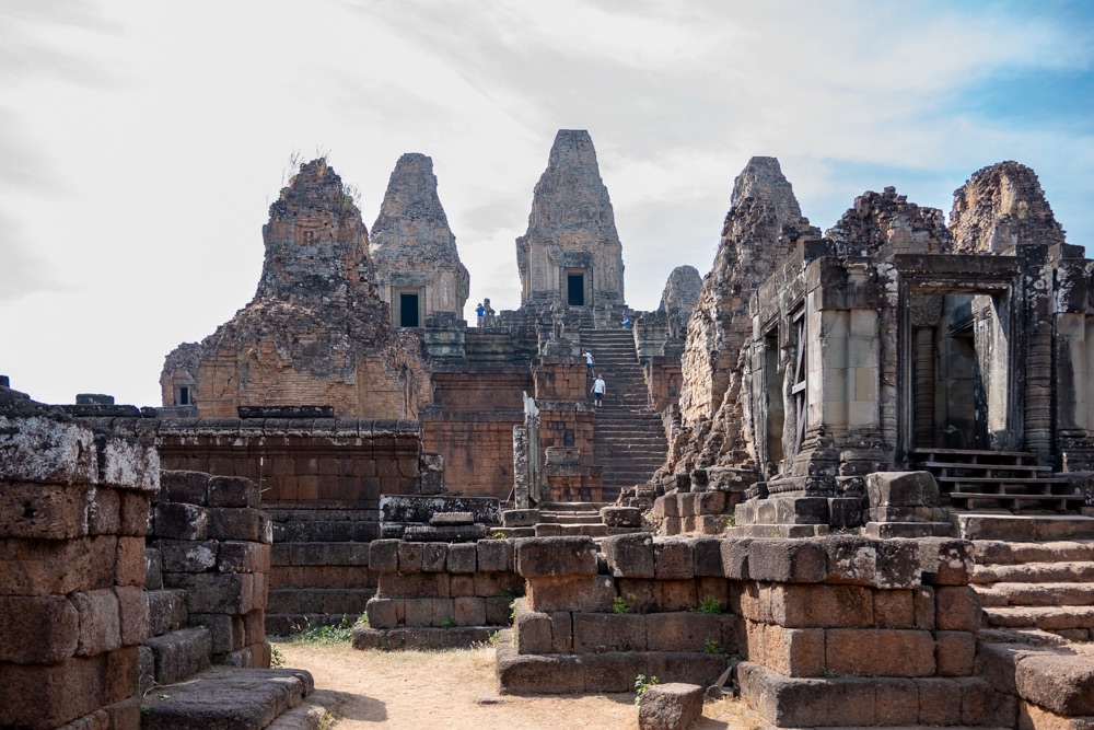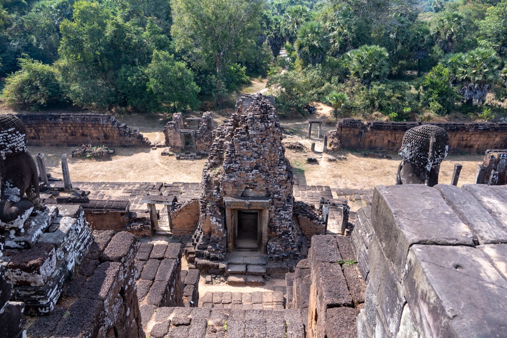 5: Pre Rup: 961-ben épült hindu főtemplom. A templom merész építészeti stílusa, arányai és finom díszei a néhány évvel korábban épített keleti Mebont (előző templom) idézik. E két templom közös érdekessége, hogy észak-déli tájolásúak, elegáns, téglalap alapú, három szintes piramisszerű templomok. Szerkezetileg két körbefutó, hosszú folyosókkal tagolt galériasorból áll, amelyeket négy-négy egyszerű átjáró díszít; a harmadik viszonylag alacsony szint egyszerű emelvényt biztosít az itt álló öt, művesen faragott toronynak.