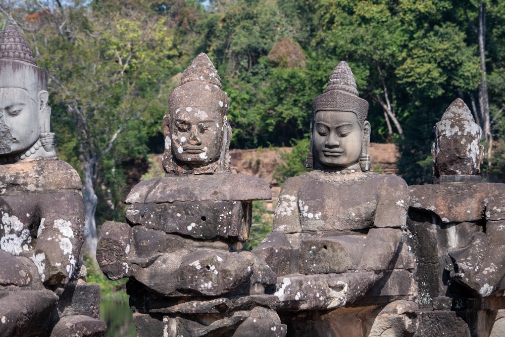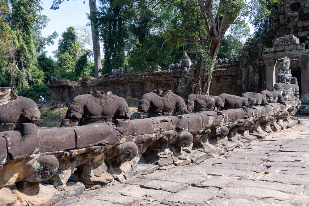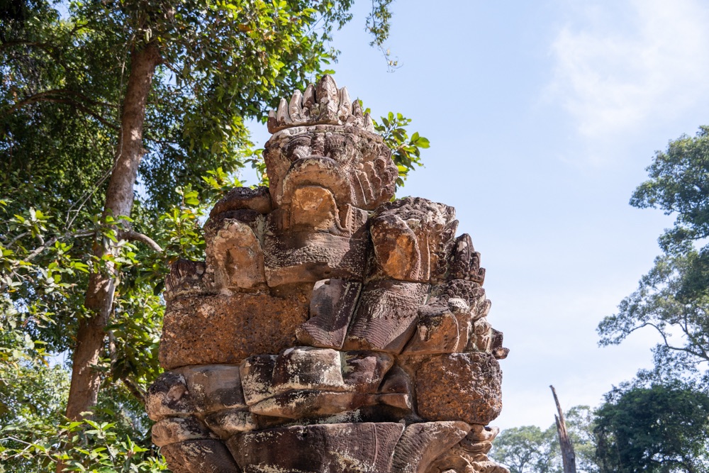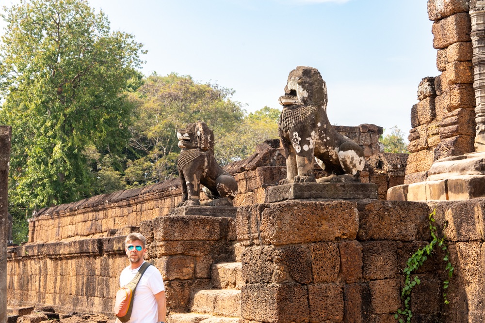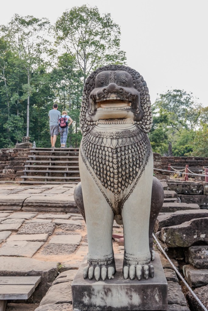 2: Neak Pean: buddhista templom, amely VII. Dzsajavarman király víztározó medencéje közepén, egy mesterséges szigeten áll. A 12. század végén épült „forrás templom” eredetileg orvosi, gyógyító célokra készült. A központi medencéhez kapcsolódó négy kisebb medence a négy őselem: a víz, a föld, a tűz és szél kifejeződése. Ezek közepén egy-egy szimbolikus vízforrás, elefánt-, ember-, oroszlán- és lófejet formázó szökőkutak, vízköpők álltak és táplálták a szentély központi medencéjét. Jelenleg a lófej egyedül, ami olyan állapotban van, hogy látható és felismerhető. A hitvilág szerint a medencében való megmártózás során az elemek betegséget okozó, megbomlott egyensúlya helyreáll, és a test bajai elmúlnak.