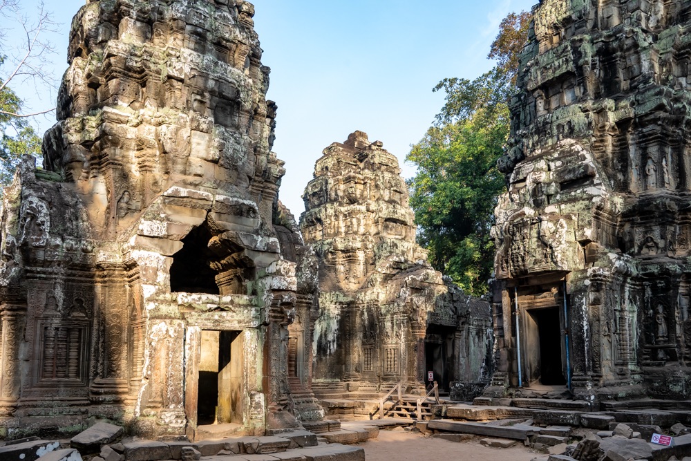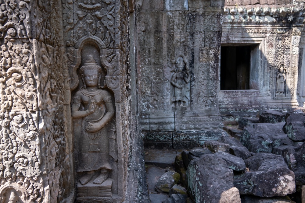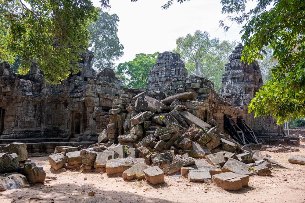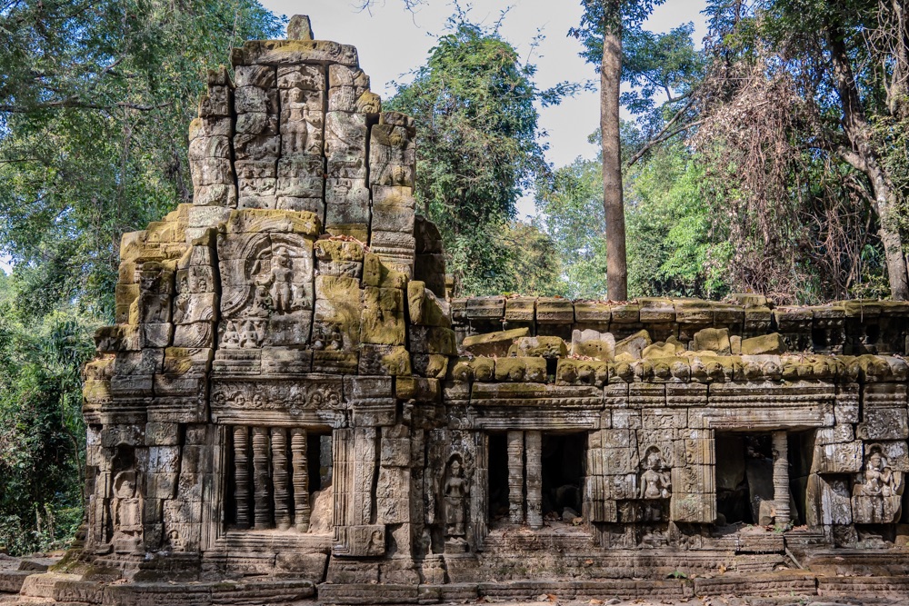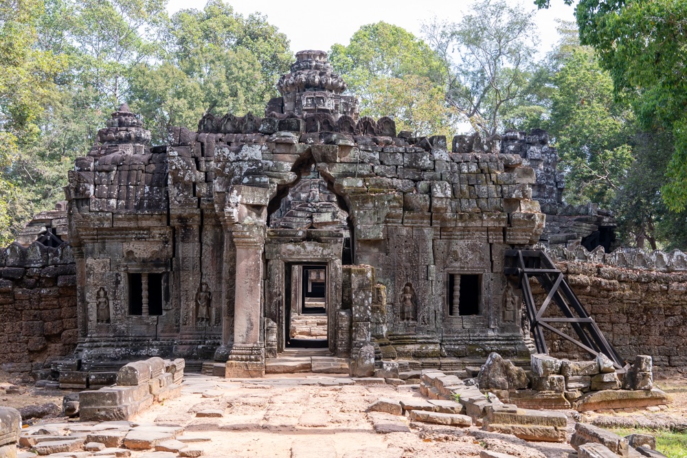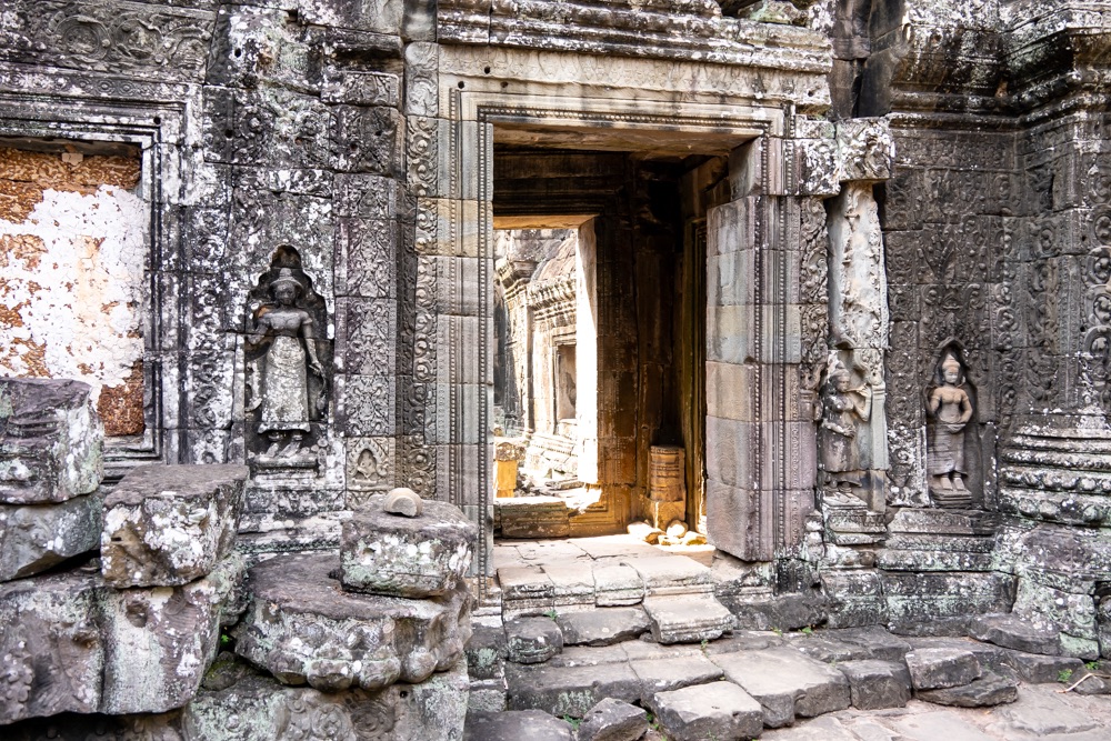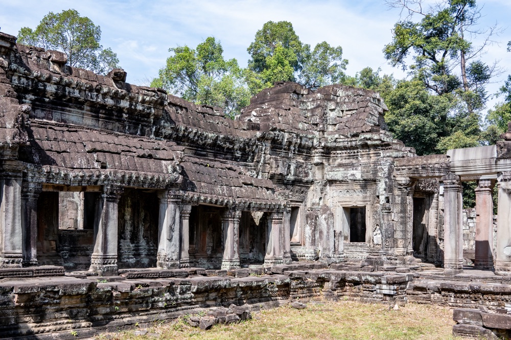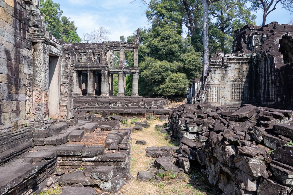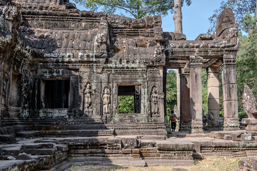 3, Banteay Kdei: A “Cellák Citadellája”, 12-13 század fordulóján  épült buddhista templom. A templom a “királyi úszómedence” partján épült bajon stílusban néhány környező kolostor hasonmásaként.