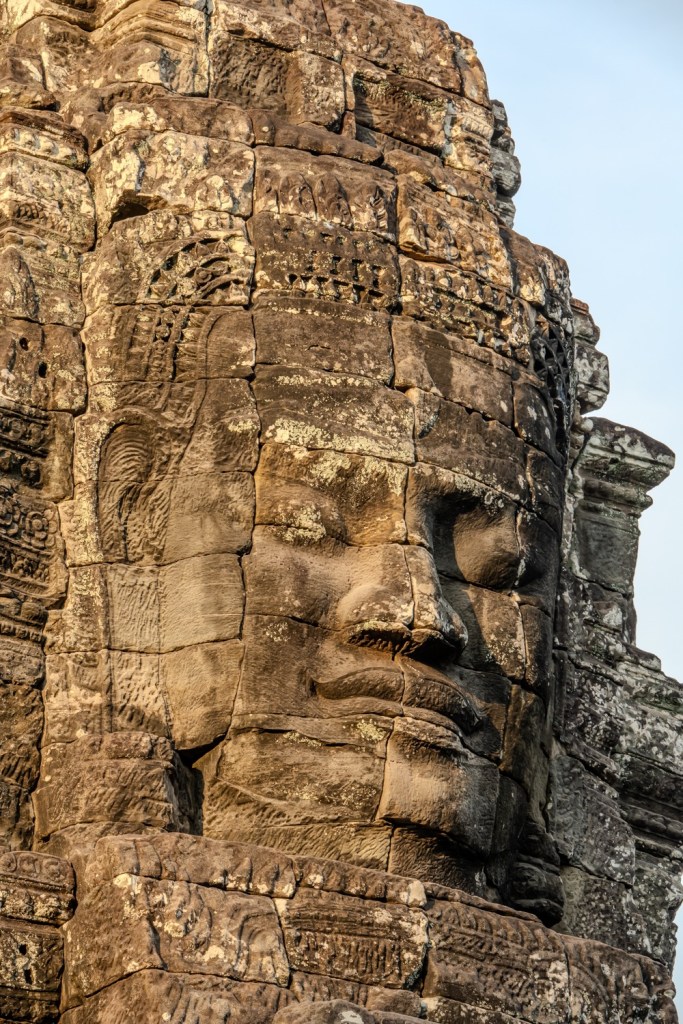 6, Bayon Templom: Az 1200-as évek elején épült, finoman dekorált Bayon-templom nevezetességei az ún. „arcos tornyok”. A négy égtáj felé forduló tornyokat összesen 196 két és fél méter magas szobor díszíti. A templomot körülfogó árkádos folyosókat, galériákat csodálatos domborművek borítják, amelyek mitológiai és Angkor korabeli történelmét idéző jeleneteket ábrázolnak. A templomot restauráló japán régészek véleménye szerint Angkor Wat klasszikus stílusával szemben a Bayon-templom „a barokk stílus meglepő, újszerű kifejeződése”. Nekem abszolút ez volt a kedvencem, feltehetően azért mert itt voltak a legkevesebben és a lemenő nap nagyon szépen világította meg.