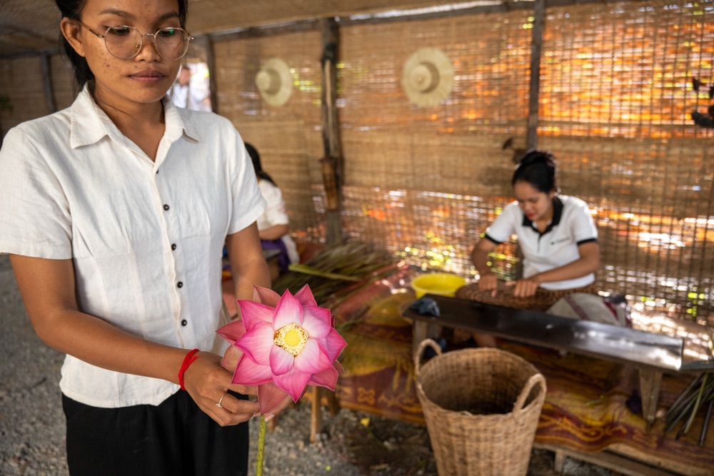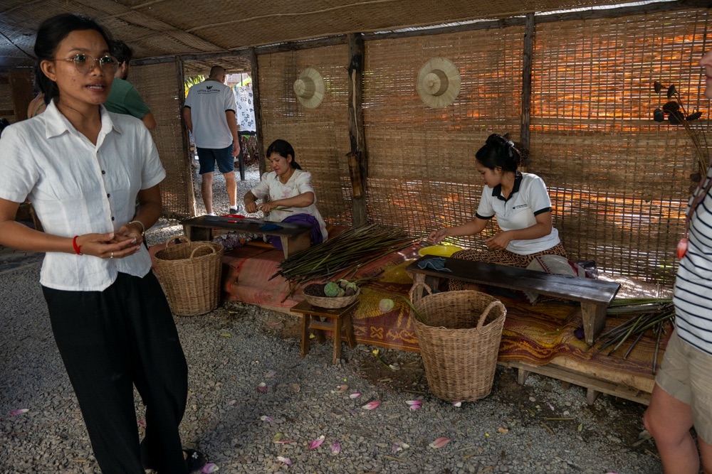 Amikor visszavittek minket a farmra, akkor ott viszont megtudhattuk a lótusz virág életét, felhasználási területeit, miszerint textilia készül a szárában lévő anyagból, tea készül a virágából, a virág belső ehető magokat tartalmaz, ami ha kiszárad akkor szivacsként működik. Végülis a virág minden elemét fel tudják használni. És mivel nagyon szép virág így dekorációnak is tökéletes.
