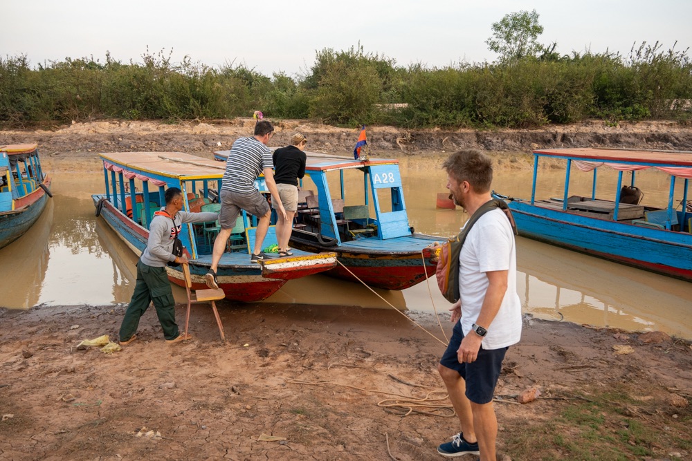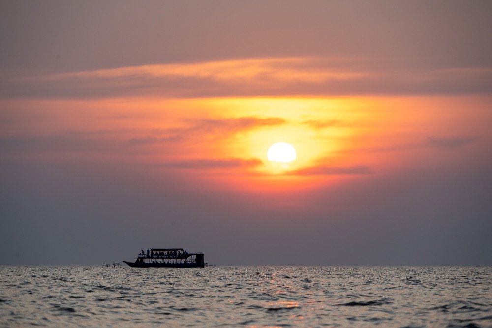Mivel a Lotus Farmon elvacakoltuk az időt, így necces volt, hogy oda érünk-e a naplementére. Ennek érdekében Mab barátunk mindent megtett, motorjával csak úgy nyomta neki, mi meg kapkodtuk a levegőt a “hintóban”. Az odafelé vezető út fele aszfaltozott, második fele vörös föld, mely annyira porzik, hogy a belépő megvásárlásakor maszkot kaptunk a jegy mellé. Mab kidobott minket és egy motorcsónakkal mentünk tovább.