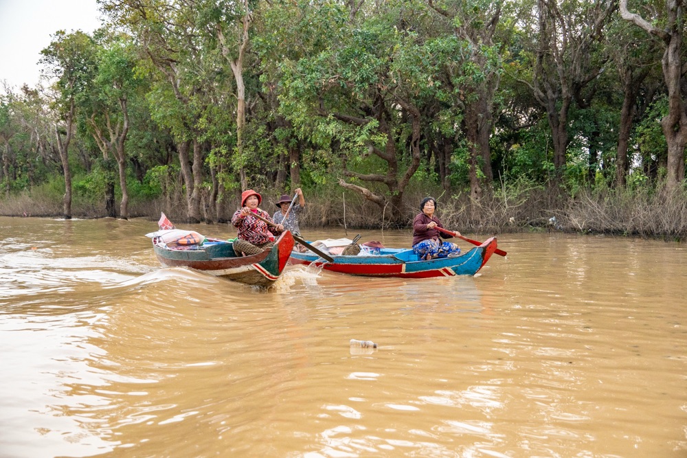 Kambodzsának is van egy Balatonja, a Szap-tó. Angkortól délre, szűk egy órányira. Vízfelülete nagyon változó: a száraz évszakban 2500-2700 km², az esős évszak vége felé a 16 000 km²-t is elérheti. A tavat az azonos nevű, 120-160 km hosszú Tonle Szap folyó köti össze a Mekonggal. Vize az év java részében ezen keresztül folyik le a Mekong felé. Minden évben megfigyelhető egy egyedülálló természeti jelenség. A délnyugatról érkező nyári monszun június és október között megduzzasztja a folyókat, s a Tonle Szap folyó – mint valami hatalmas csatorna – ilyenkor megváltoztatja a folyásának irányát és a Mekong vizét kezdi el szállítani a tóba, melynek vízfelülete ezzel több mint 10 000 km²-rel is növekedhet. A hatalmassá duzzadt tó mindaddig tárolja a Mekong vizét, amíg – általában novemberben – a folyó vízszintje nem süllyed a tó vízszintje alá. Ekkor a tó vize újra a Mekong felé indul meg. Ahogyan a tó változtatja a partvonalát, úgy változtatják a helyüket a vízre, tutajokra települt úszó falvak, melynek lakói halászatból élnek. Amikor a tó vize visszahúzódik, a bambuszkerítéssel körülvett, úgynevezett szamrákban hatalmas mennyiségű hal marad vissza. A tó partján van egy Kampong Phluk nevű falu, amely a monszun után látványosan a vízben van, jelenleg csak a házak minősége, a szegénység volt az ami elképesztett bennünket.