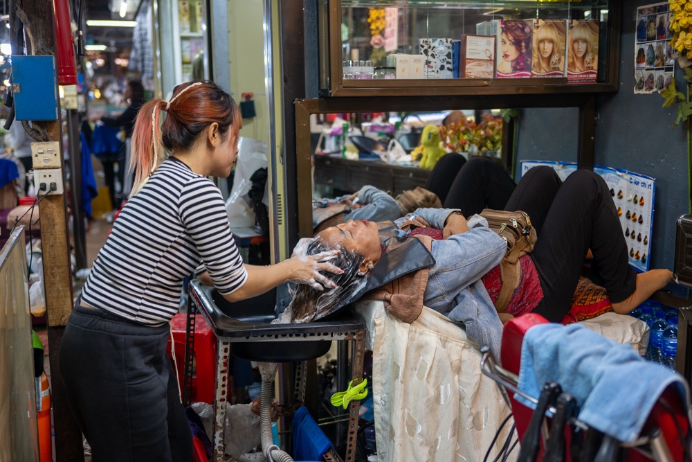A belvárosi csavargásunk során a piac eddig még számunkra ismeretlen bugyraiba jutottunk el, ahol a gyümölcs, zöldség, friss hal, rák és mindenféle tenger gyümölcse mellett a varrónő, a fodrász, manikűrös, pedikűrös, kézimunka árus és minden is volt.