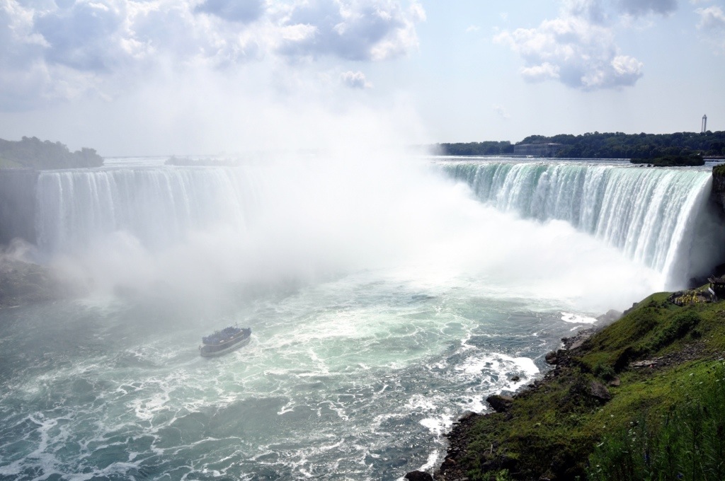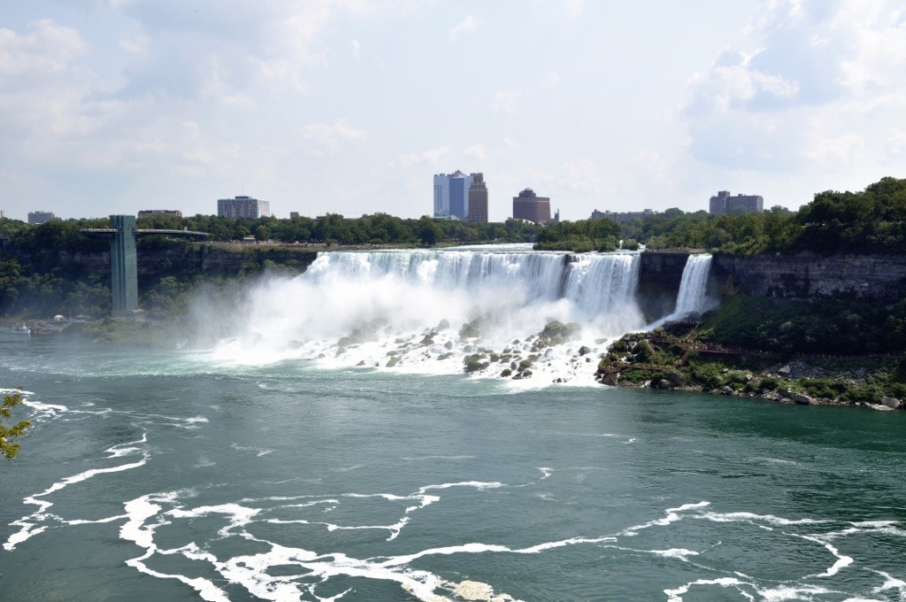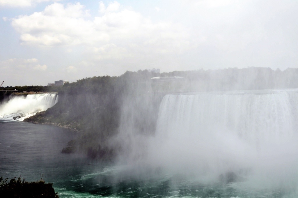 A Niagarából sosem elég! Ezért aztán újfent elmentünk megnézni, csak most a kanadai partról. Mindenki, akivel Kanadában találkoztunk csak azt magyarázta, hogy a kanadai oldal mennyivel szebb. Véleményem szerint nem feltétlenül szebb, inkább más, és ettől érdekes. Tényleg sokkal több a program lehetőség a Niagara mellett a kanadai oldalon, mint az amerikai oldalon, meg hát más a látvány! Nem volt vészesen sok a turista, bár amikor valami programot be szerettünk volna fizetni, akkor mindig 2-3 órával későbbre kaptunk csak jegyet. Így sajnos a Niagara vízesés mögé való bemenésről is lemaradtunk, meg egy gyors Jet hajókázásról is.