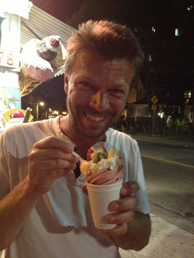 Közben Laci is hazaért, és vele együtt mentünk be a városba vacsorázni, meg csavarogni, illetve fagyizni. Éjfél után értünk haza.