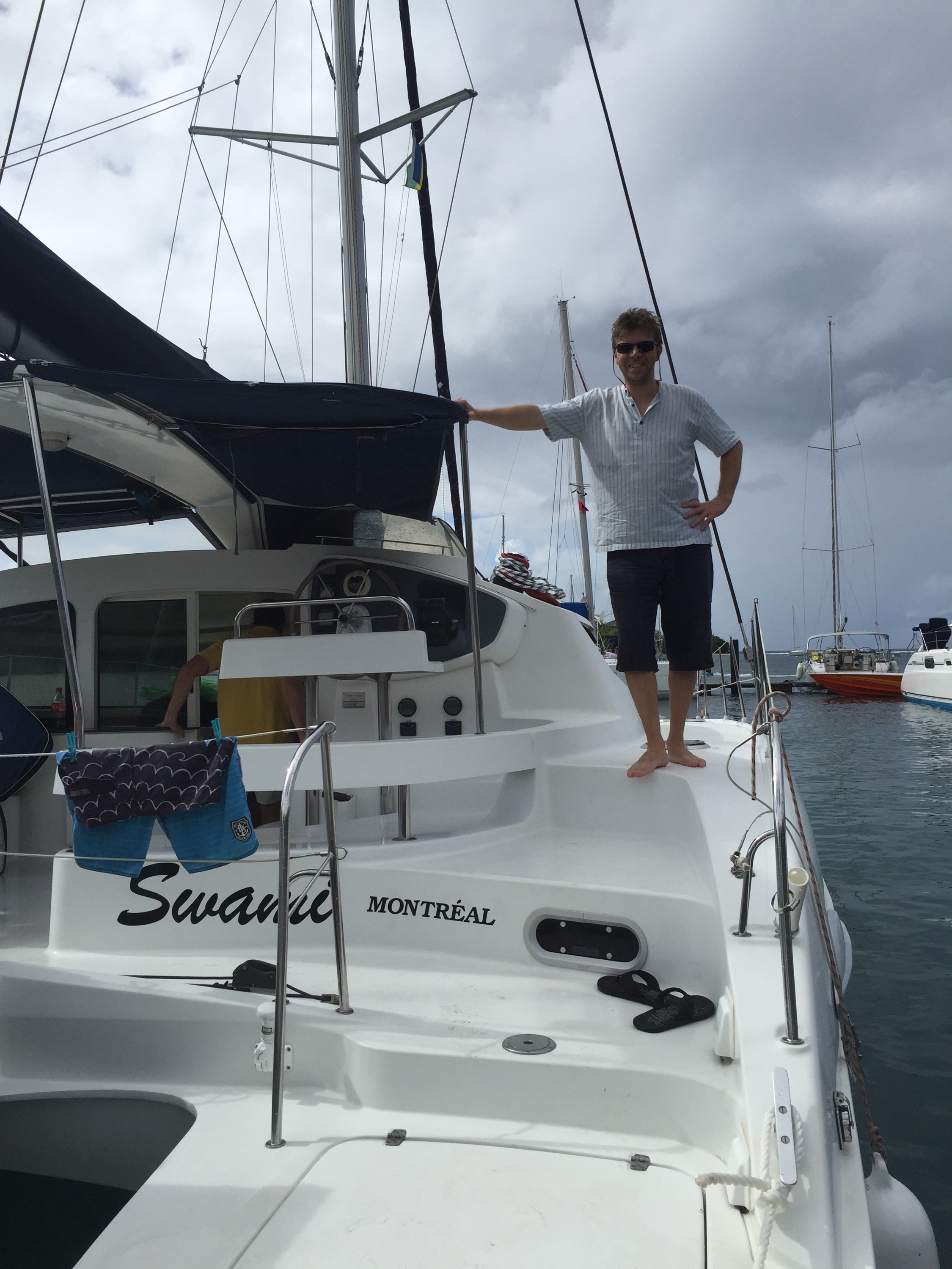 Ma időre oda kellett érjünk Canouan szigetére, ugyanis a 7-dik útitárs, alias Sanyi Laci Kanadából ott csatlakozott be. Eredetileg nem így terveztük, hanem hogy Saint Vincenten találkozunk vele aznap amikor mi is megérkeztünk, és jön velünk a kezdőponttól. Igen ám, de Laci nemrég szerezte meg a kanadai állampolgárságot, melynek tiszteletteljes eskütétele tegnapi napra esett, amit másfél héttel az indulás előtt tudott meg. Az eskütételt nem tudta kihagyni, próbált utána járni, hogy milyen egyéb megoldások vannak, de sajnos a repjegy ráfizetéssel való áttevése maradt megoldásnak. Hogy ne Saint Vincenten kelljen dekkoljunk, és rá várnunk, így a fiúk újratervezték még otthon az útvonalat, Sanyi Laci pedig aszerint módosítatta a repjegyét.