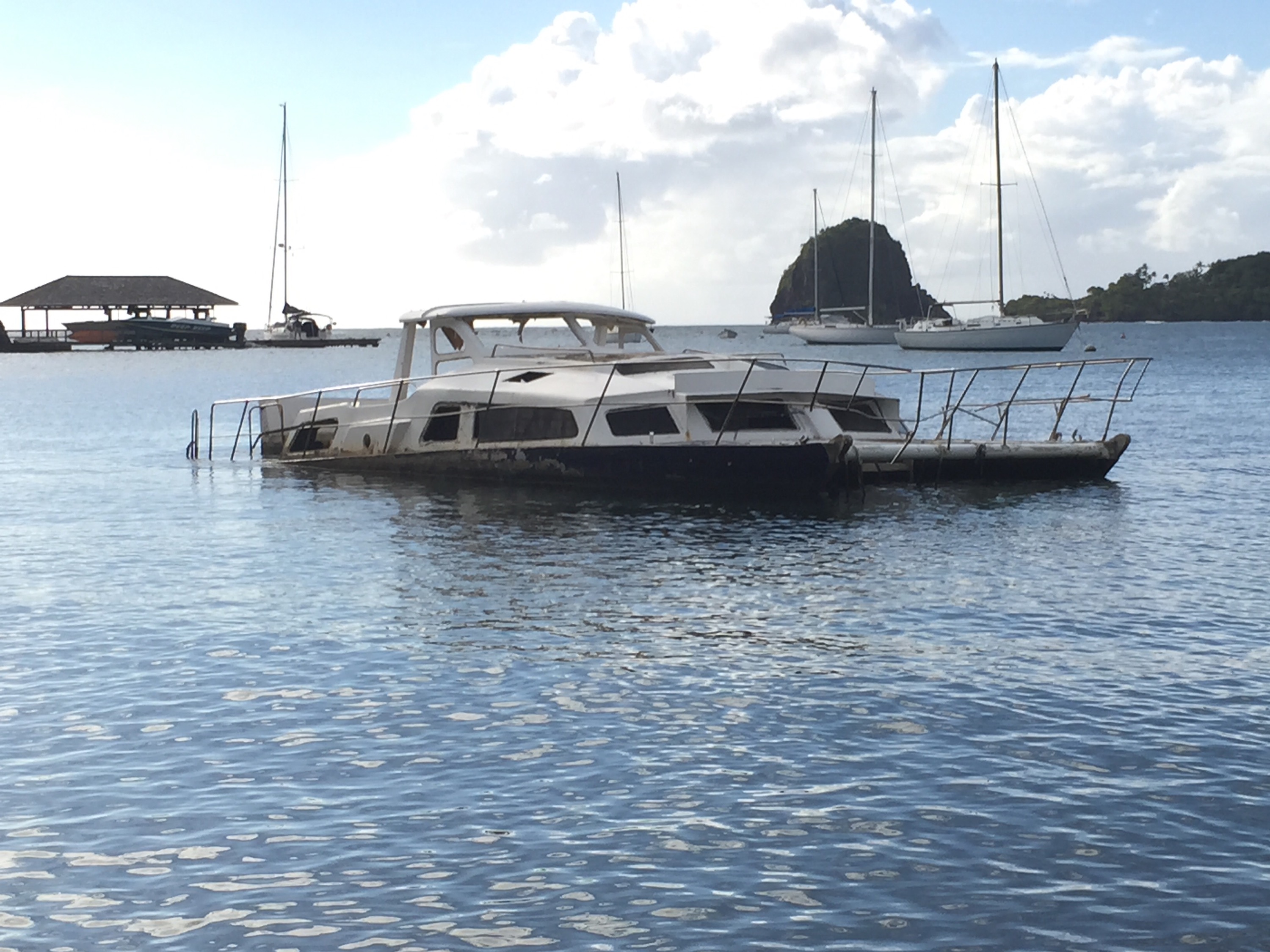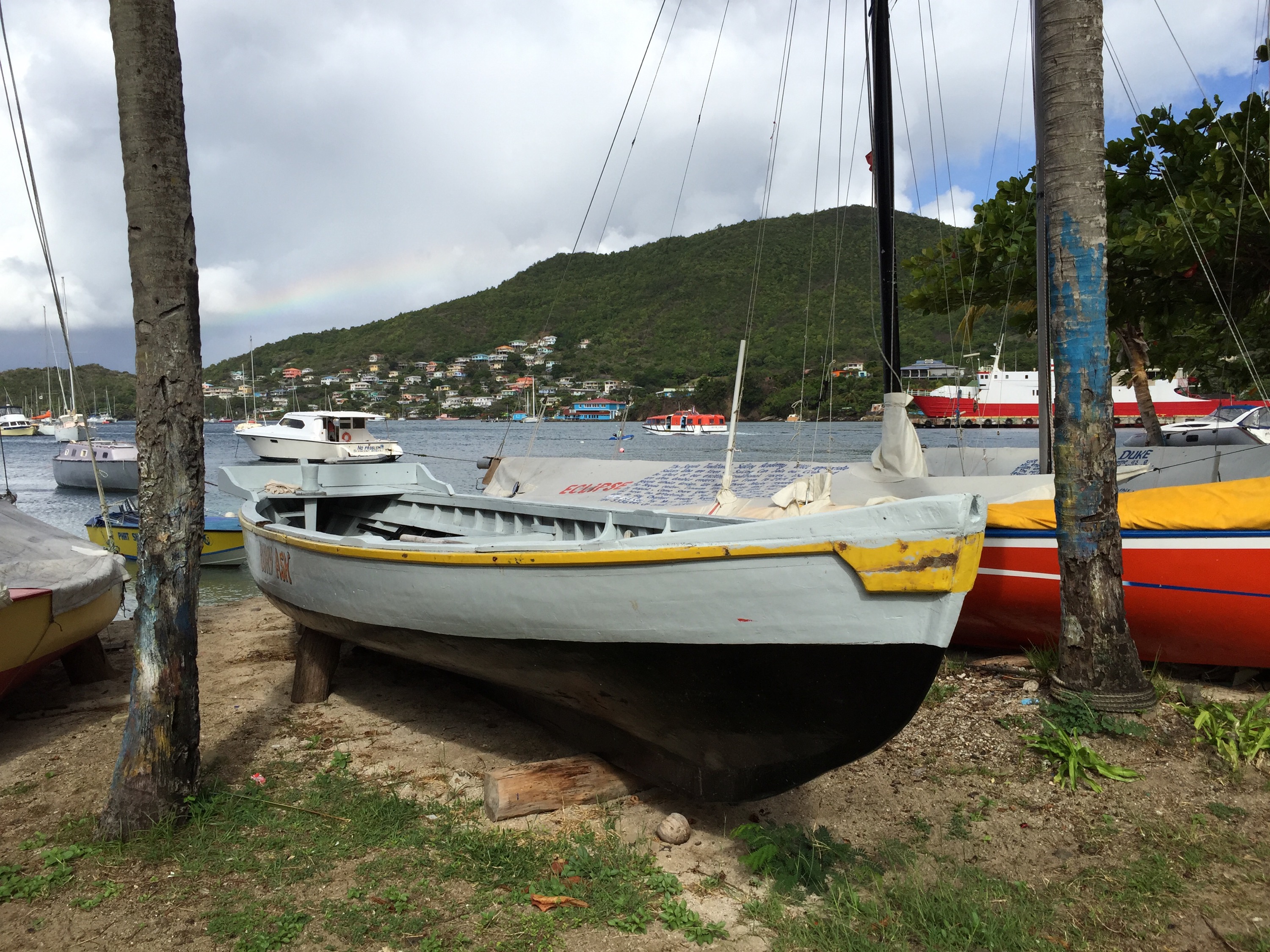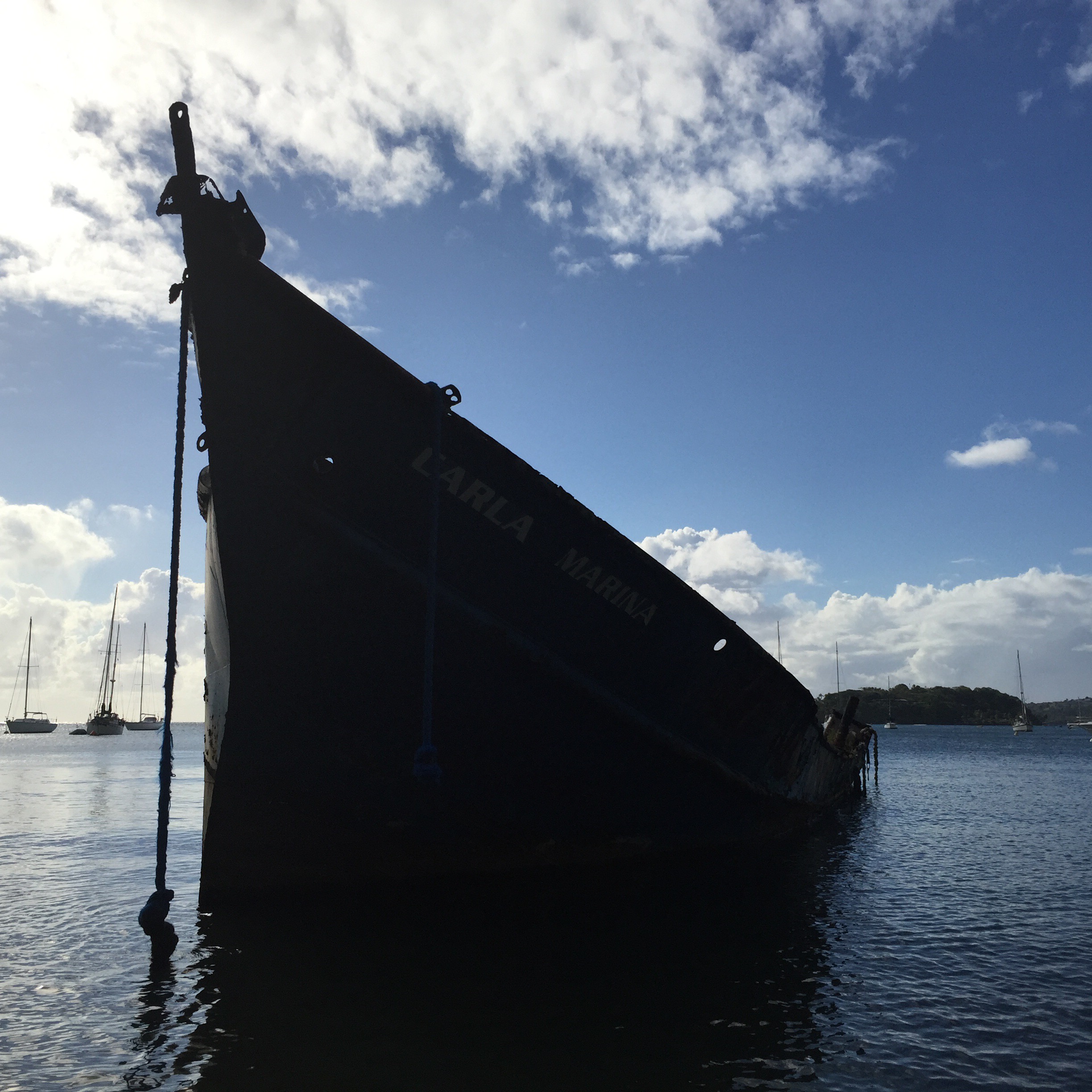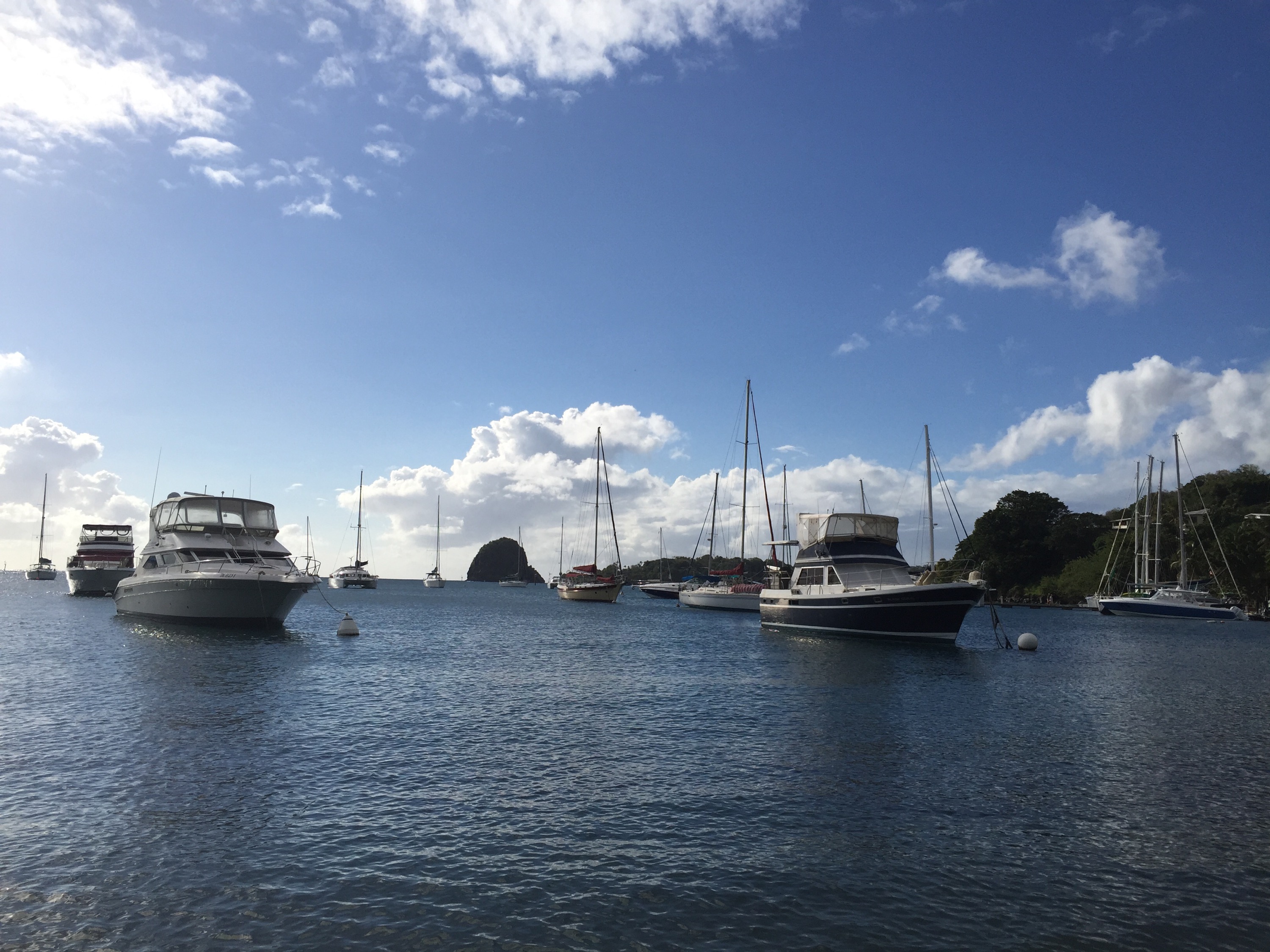 Mi délután kettőkor érkeztünk meg Canouan sziget Charlestown öblébe. Jól teljesítettük a távot, Laci gépe csak 5 után érkezett.