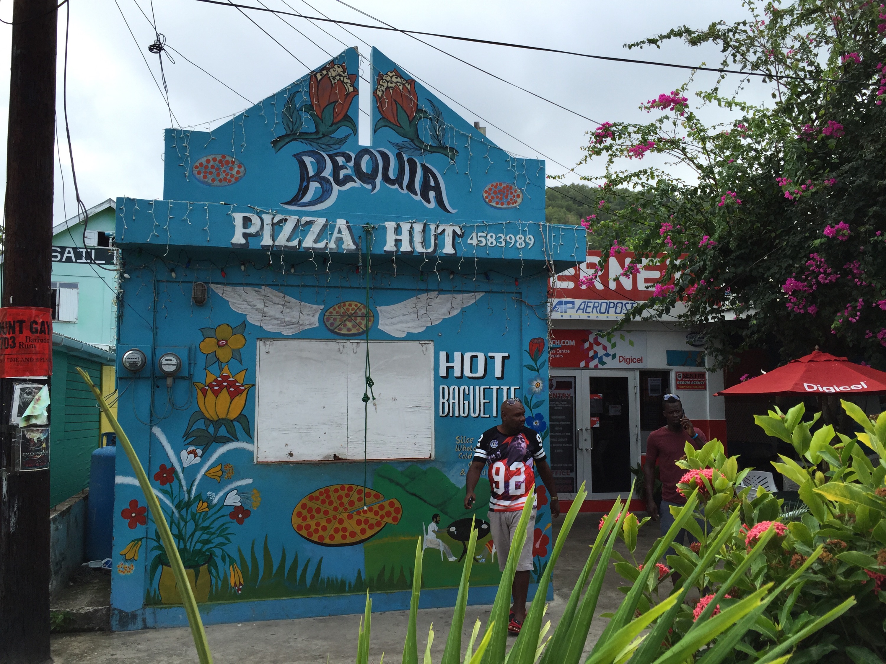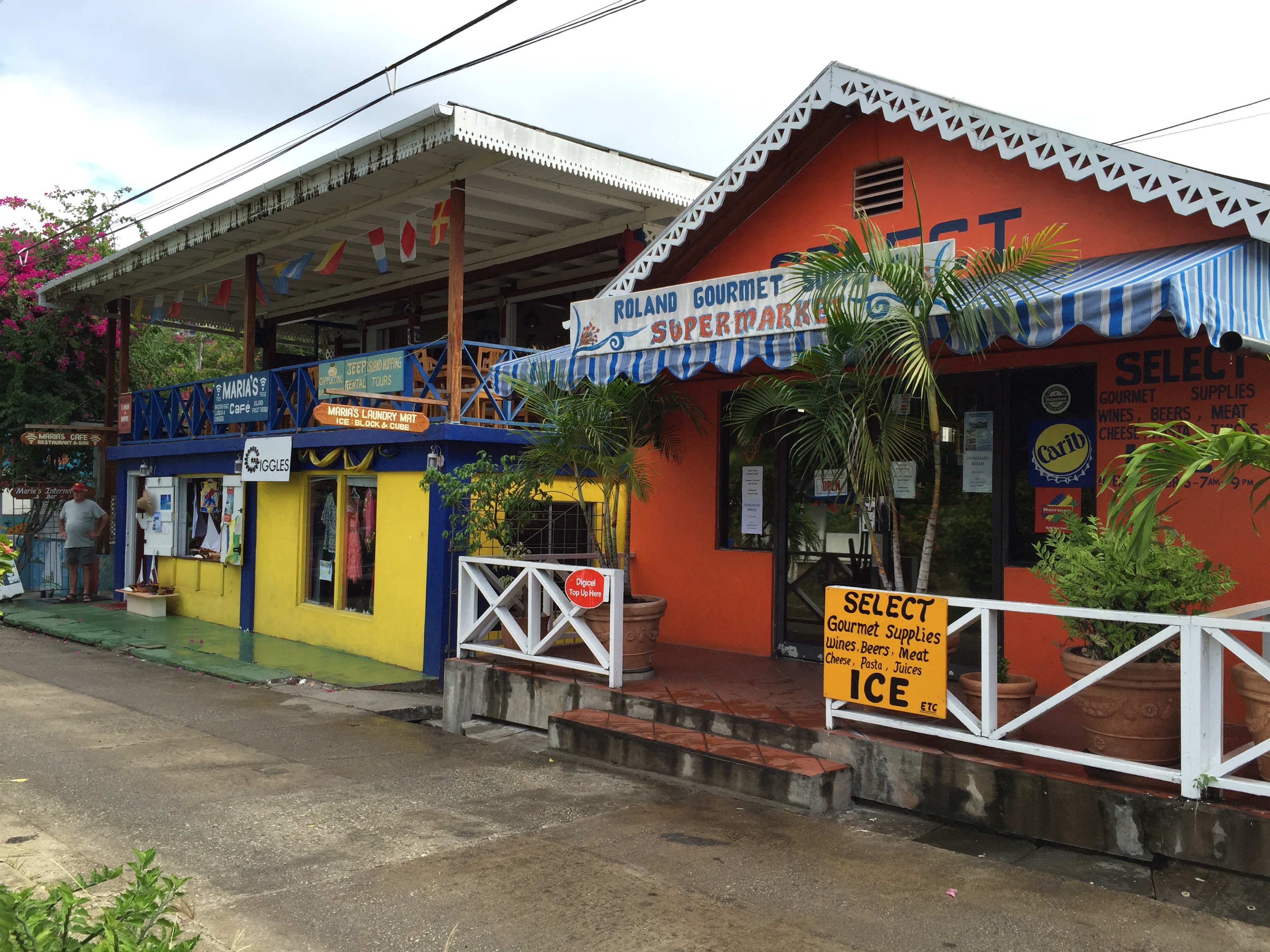 Mustique szigetére reggel még kimentünk: találtunk tegnap egy nagyon klassz kis pékséget, és ott akartunk reggelizni meg kávézni. Ráadásul mosdót is találtunk rendesebbet.