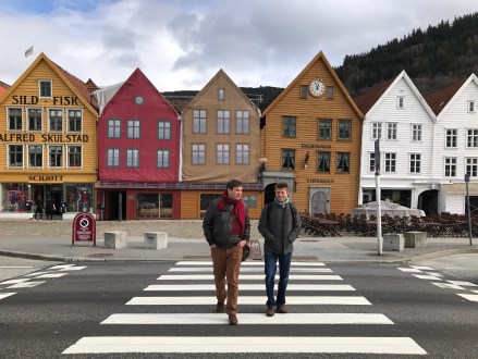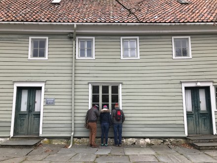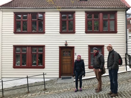 Bergen hiába a második legnagyobb város Norvégiában, jószerivel egy nap alatt fel lehet fedezni sétálva. A szállásunk a belvárosban van. Reggeli után Dióék megmutatták az általuk már pénteken bejárt várost.