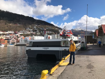 Fél 12-kor kikisértük az Esztoékat a reptérre menő buszhoz, mi pedig a halpiac felé vettük az irányt. A kikötő ezen részén hirdették a naponta 2-szer induló hajót, ami egy 2-3 órás fjord útra visz. Ki is néztük a hirdetés alapján és láttuk hogy du 2-kor indul majd. Gondoltuk addig felmegyünk az utcánk végéből induló siklószerűséggel a helyi Gellért hegyre. Technikai okok miatt nem közlekedett a sikló. Nem is tudta megmondani az ott dolgozó lány, hogy mikor lesz üzemkész. Emiatt aztán elmentünk kávézni, nézelődni és elütni az időt. 2 óra előtt egy kicsivel meg visszamentünk a halpiac mellé, hogy hajóra üljünk fjordozni. Álltunk és vártunk a hajó mellett (mert, hogy a személyzet sehol sem volt), amelyről később kiderült, hogy nem is az, ami nekünk kell… Konkrétan lemaradtunk a betervezett útról. Mikor rájöttünk csak álltunk szomorúan és néztünk csodálkozva, hogy milyen bénák vagyunk.