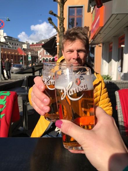 Bergen nem a nyárias tavaszról híres… Míg otthon kellemes napsütés engedett el bennünket, addig Bergenben 6 (igen! 6!) fok várt minket. Tudtuk, hogy ez lesz ezért hát előkerültek a télikabátjaink, beugrodtak a bőröndbe és aranyosan meghúzódtak ott mígnem Norvégiában elő nem rántottuk.