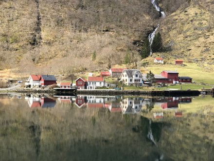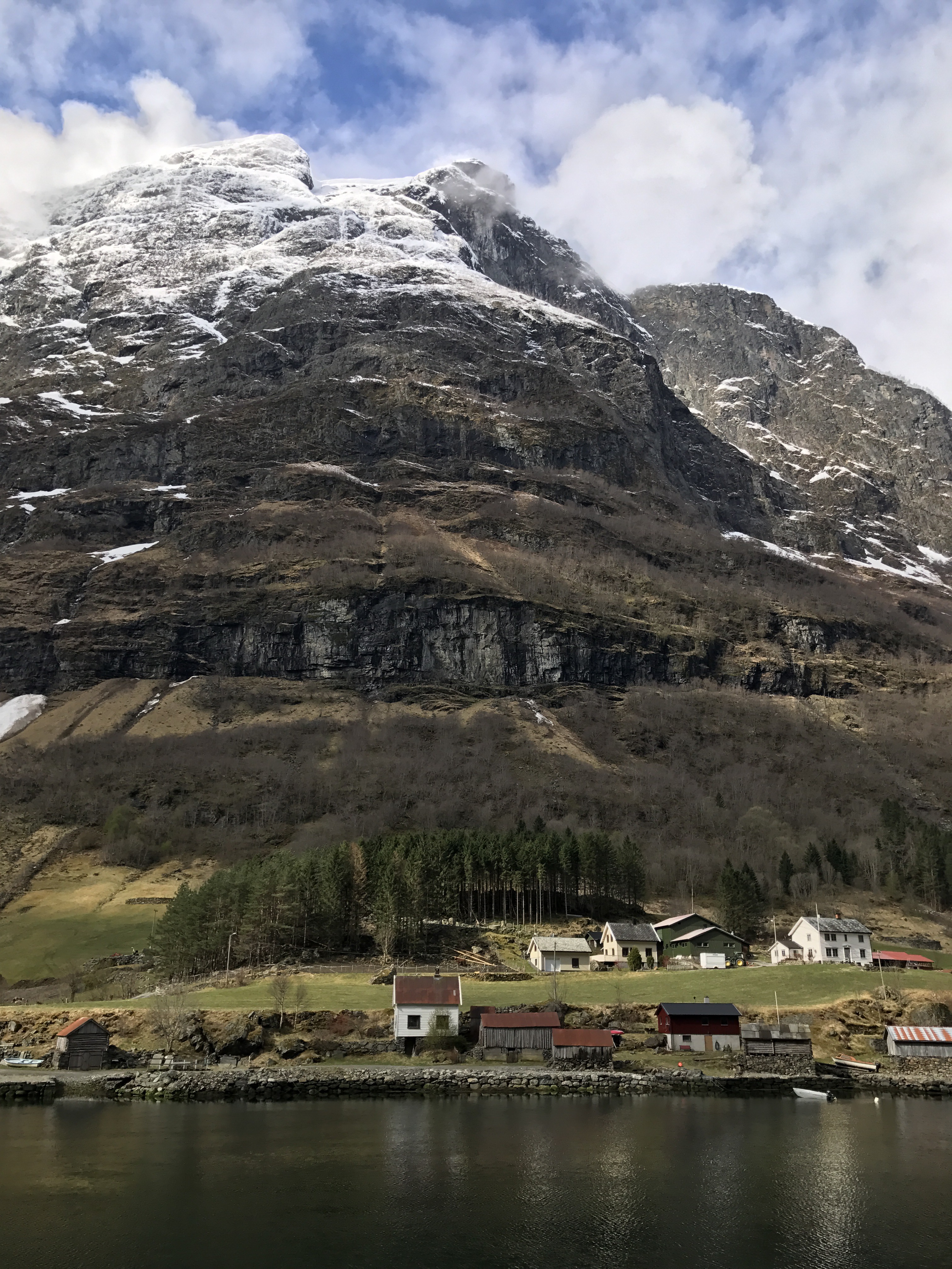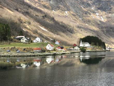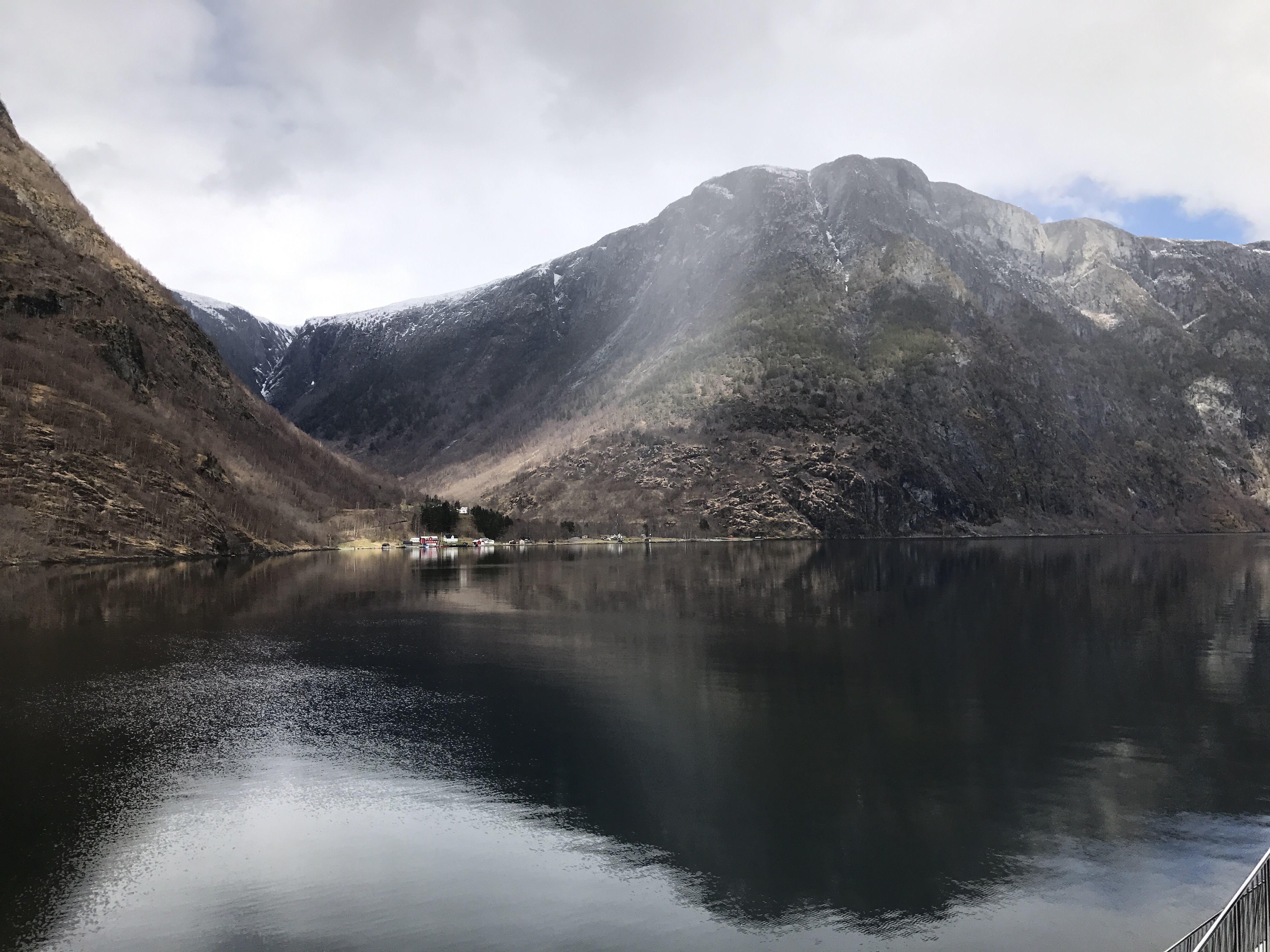 Gudvangenből egy nagy hajóval indultunk tovább déli 12-kor. A hajó Nærøyfjord-on és az Aurlandsfjordon át vitt minket 2 óra alatt el Flåm városkába.