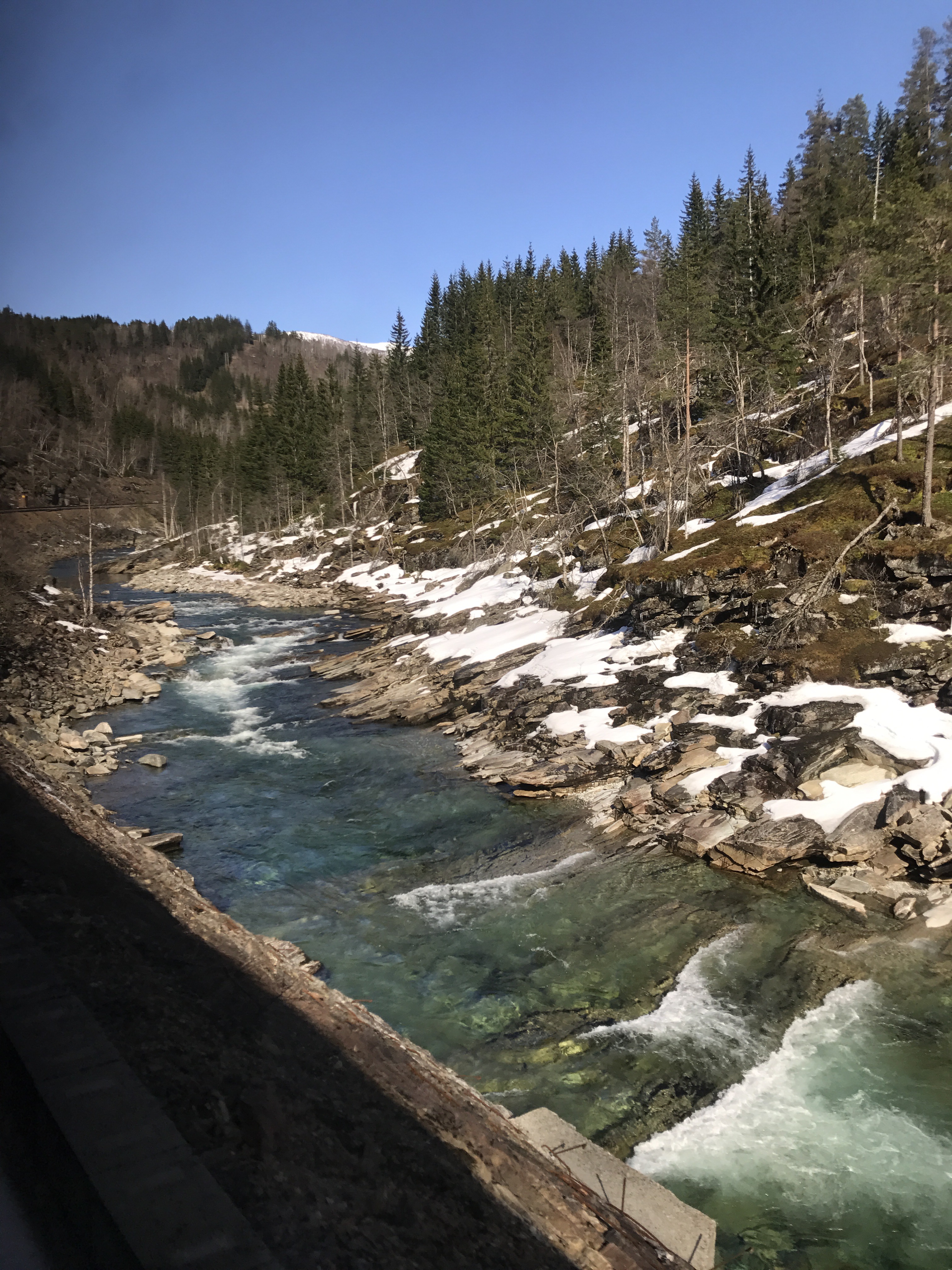 Az első szakaszban Bergenből elvonatoztunk Voss-ba az Osterfjord mentén. Majdnem 10 óra volt mikor Vossba megérkeztünk. A vonaton aránylag sok fiatal ment sí cuccal felszerelkezve egy kis húsvét hétfői síelésre.