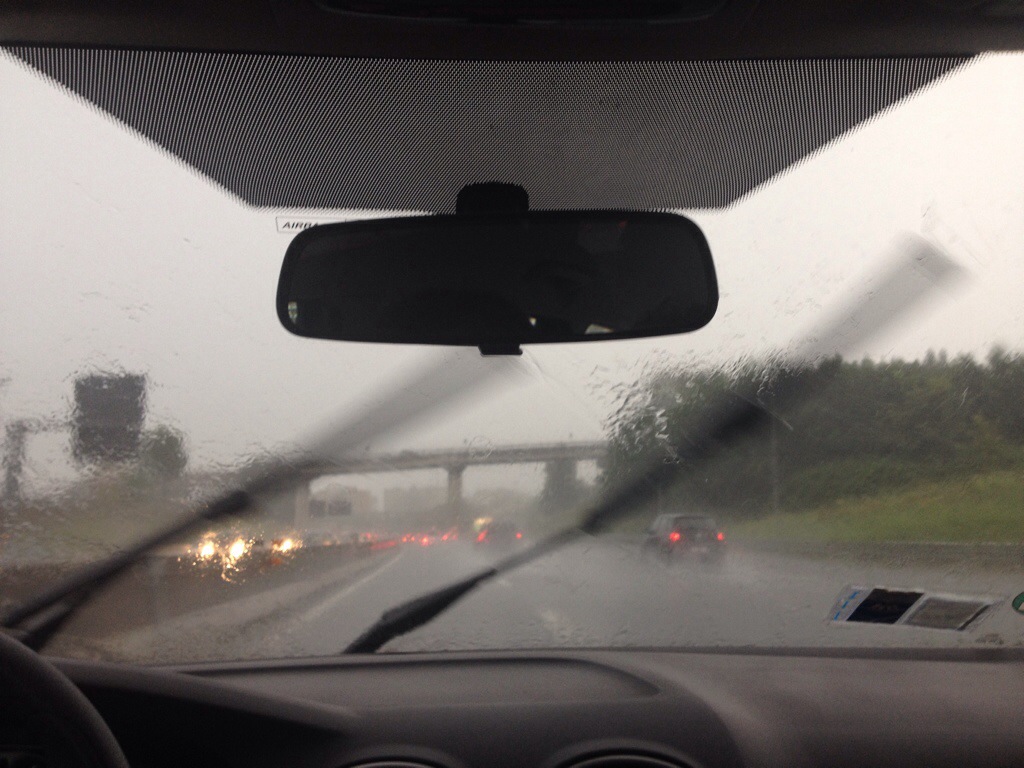 Az outletben nem esett az eső, de onnan átmentünk egy bevásárló központba, ahonnan egyszer már el akartunk volna indulni, de nem sikerült, mert dézsából öntötték fentről. Kénytelenek voltunk tovább csavarogni a boltokban…