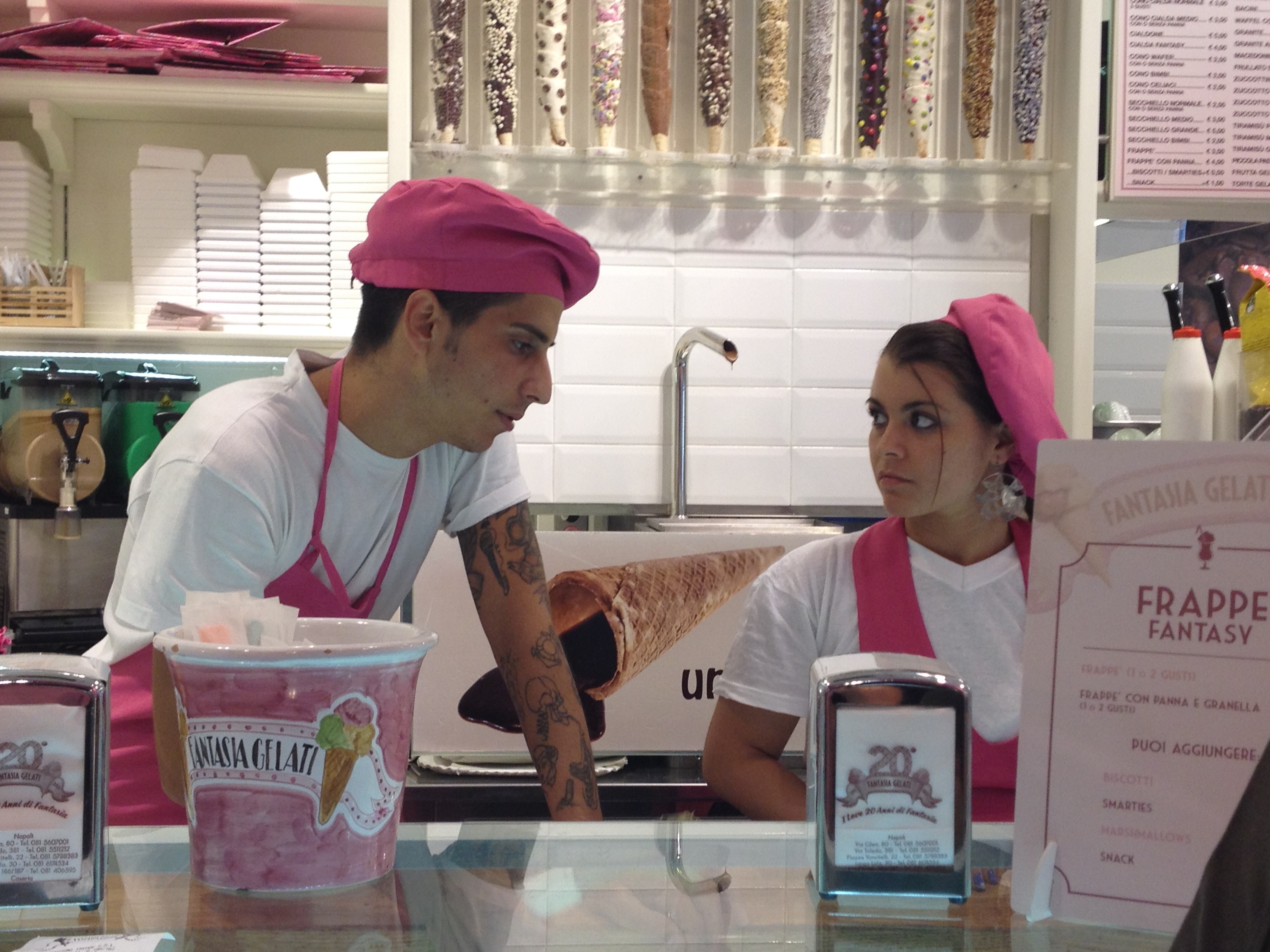 Találtunk egy nagyon klassz vacsorázós helyet, ahol ugyan egy szót se beszéltek angolul, de végülis már az olasz tudásunk – leginkább a Gáboré – már eléri az alapfokot. Éhen már nem fogunk halni, a kaják nevei már egész jól mennek. És hát itt is harmad annyiért ehettünk, mint egy nápolyi étteremben.