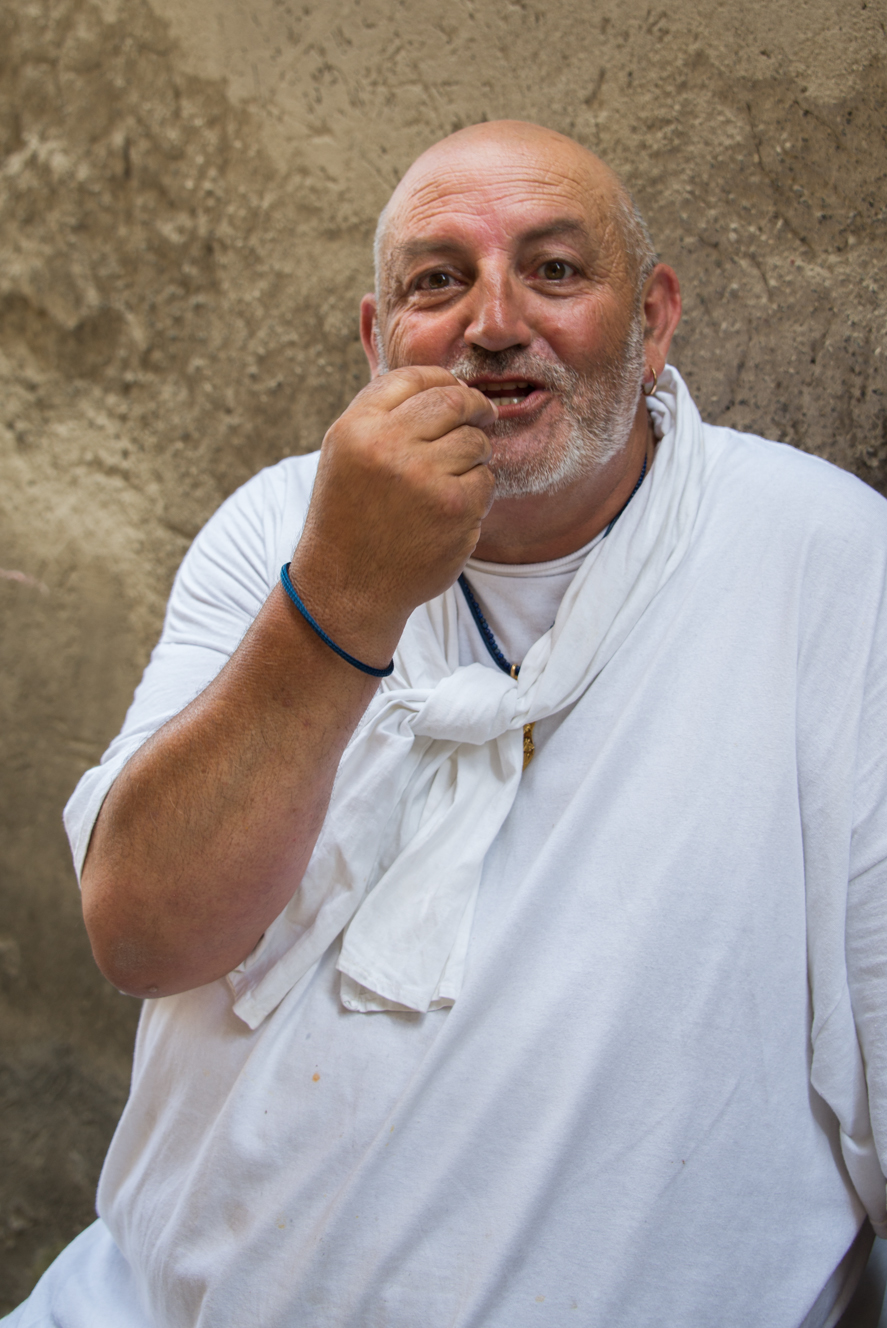 A kostoló után ismét belefutottunk abba a problémába, hogy mi már éhesek vagyunk, ellenben az olaszok még nem ennének, ezért aztán az éttermek sincsenek nyitva. A helyi italt árusító emberünk a szomszéd éttermet ajánlotta, ami kicsit gyanús volt, de gondoltuk miért ne, hátha mégse rossz. Átmentem megnézni az étlapot… Néhány étel olaszul felírva, ár semmi… De mi bátrak vagyunk, szóval kivártuk a 7 órát, amikor nyitnak az éttermek, és átültünk a Trattoria da Nennella-ba. Nagyjából 7:10-kor már tele is volt a hely, és elkezdhetted nézegetni az étlapot, ugyanis csak 7:30-tól volt rendelés felvétel, de addigra meg már teljesen tele volt az étterem. Azt gondoltuk totál káosz lesz az egész mire felveszik a rendelést, és mire az elkészülnek a kaják… De nem! Valamit nagyon tudnak, ugyanis pikk-pakk végigfutott az egyik pincér a vendég seregen, és az egyszer használatos kockás asztalterítőre ráírta minden asztalon a rendelést, miközben a saját menűlapján csak húzogatta a strigulákat. Rendeléstől számított 5 percen belül majd mindenki evett is. Eleve olyan kaják voltak az étlapon, amiket jól elő tudtak készíteni, és amik hamar összerakhatóak. Nem voltak nagy adagok, de tulajdonképpen pont elég volt. Míg ettünk pörögtek-forogtak körülöttünk a felszolgálók vagy öten, aztán szépen eltüntek előlünk az üres tányérok, majd egy nagy tál barackból mindenki meg lett kínálva. A pincérek hangoskodása, kiabálása hozzá tartozott az étterem olaszos hangulatához, ami ott, abban a helyzetben nagyon hatásos volt. Kifejezetten élveztük. Egyszercsak kijött az egyik nagyobb darab felszolgáló és olaszul mutogatva hangosan kérdezte, hogy ha készen vagyunk, akkor miért ülünk itt, miért nem megyünk már? Persze kedvesen, de kellőképp határozottan, utalva a később érkezőkre, akik vártak a sorukra, hogy beülhessenek az étterembe. Számlát nem hoztak, kimenetkor kellett fizetni, és nem a rendelt kaja alapján, hanem főre számoltak. Harmadáron ettünk mint első este!!!