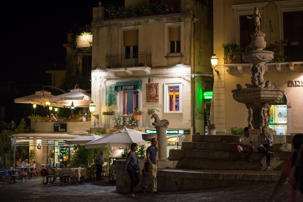 Találtunk egy nagyon klassz vacsorázós helyet, ahol ugyan egy szót se beszéltek angolul, de végülis már az olasz tudásunk – leginkább a Gáboré – már eléri az alapfokot. Éhen már nem fogunk halni, a kaják nevei már egész jól mennek. És hát itt is harmad annyiért ehettünk, mint egy nápolyi étteremben.