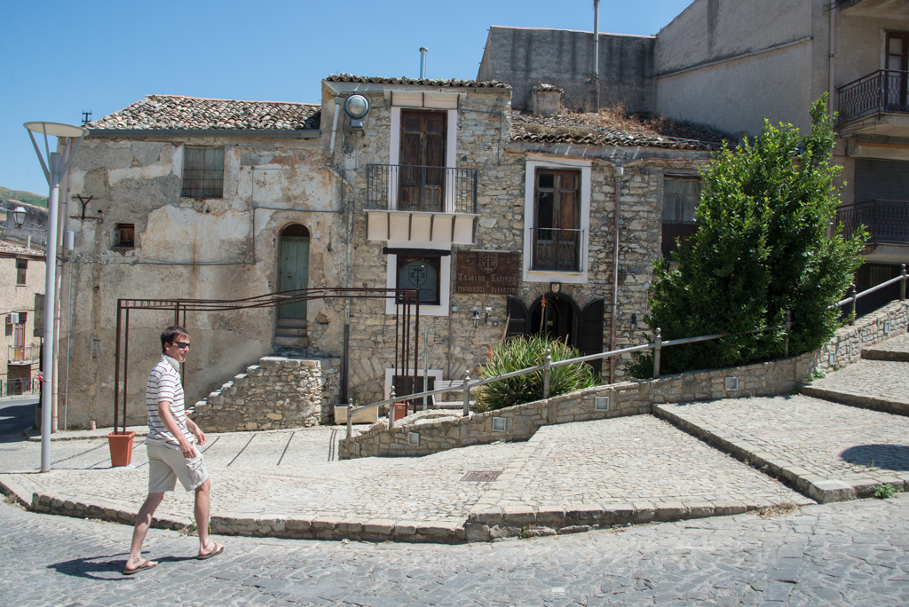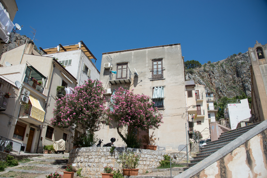 Terveink szerint kora délután elindultunk vissza a Csizma orrába, de még közben Szicília északi részén két városba is benéztünk. Palermoból kijövet az autópályán hatalmas dugó volt, amit még aránylag időben észrevettek a fiúk. Hegyen-völgyön át, kisebb utakon, néhány apróbb eltévedéssel, szűkebb utcákon való fennakadással, de eljutottunk abba a városba, Coccomo-ba, ahol egy vár várt ránk. Jobban mondva nem várt minket, ugyanis fél kettőkor, amikor megérkeztünk, akkor a vár is sziesztázott, és 1-3 között zárva volt. Maradt a vár külsejének felfedezése.