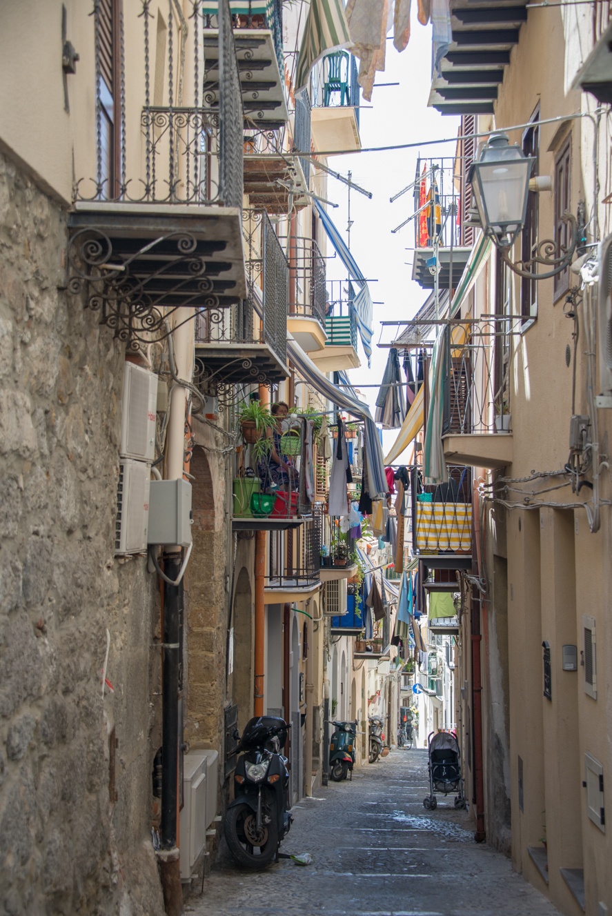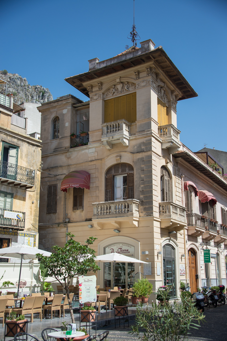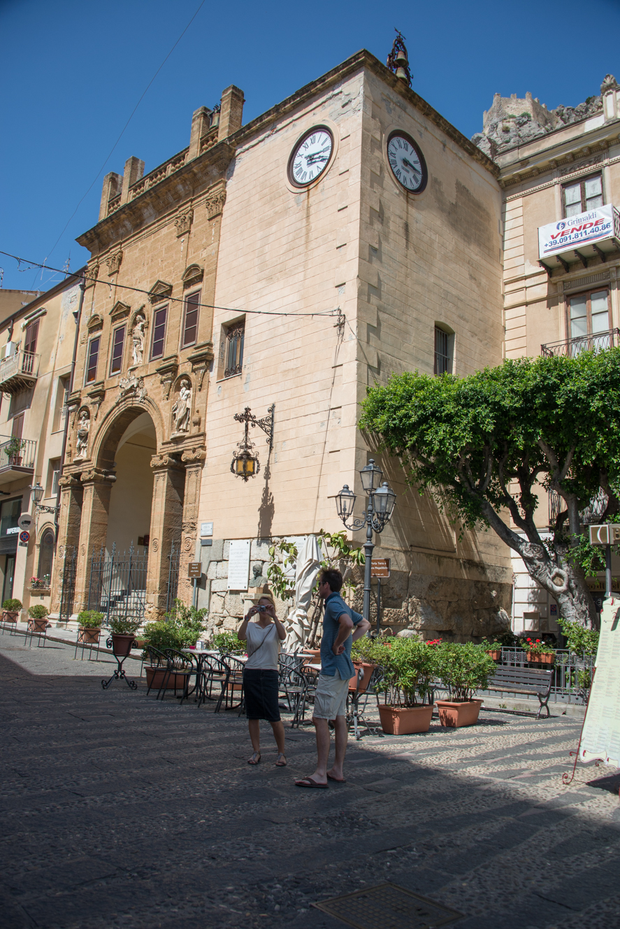 Coccomoból Cefalùba autóztunk át, ami egy nagyon helyes kis tengerparti város. Orsi úgy tippelte, hogy ez a palermoiak Siófokja. Dimbes-dombos, sok kis régi épülettel és egy aranyos tengerparti résszel. Vasárnap délután lévén nem találtunk parkolóhelyet, csak egy fél órás tekergés után. De megérte parkolóhelyet keresni, mert jó kis várost találtunk. Végül itt ebédeltünk, meg az ebéd után járó fagyit is itt fogyasztottuk el. Borzalmas nagy adag még a kicsi fagyi is.