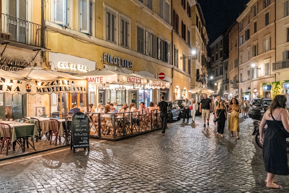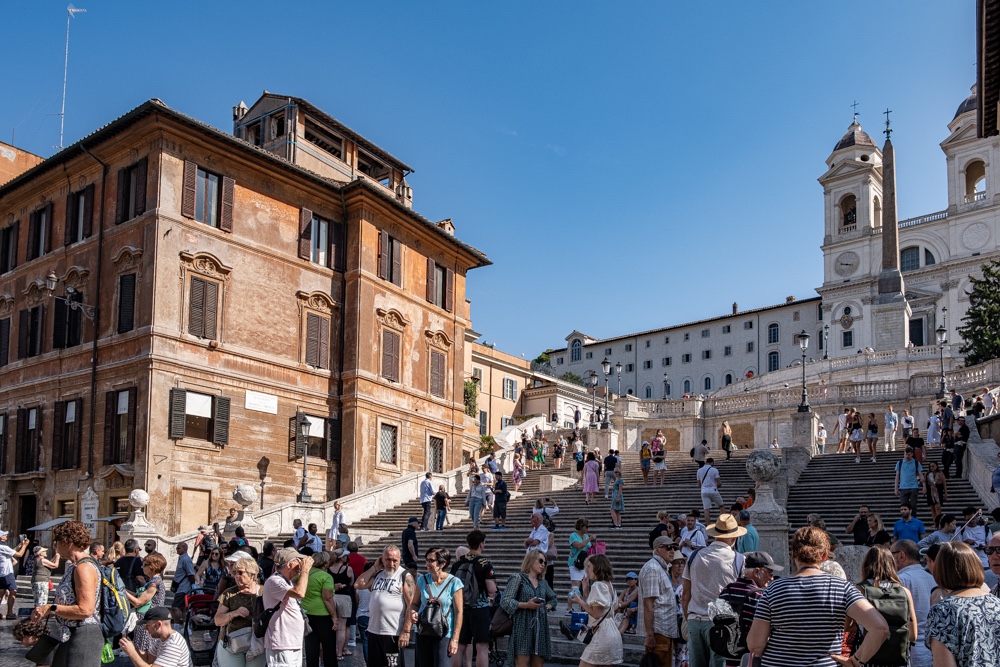 Két órát töltöttünk el itt, majd visszasétáltunk a városba úgy, hogy a spanyol-lépcsőt a tetején értük el, és onnan sétáltunk lefelé. Majd a környező utcákban csavarogtunk és közben megebédeltünk.