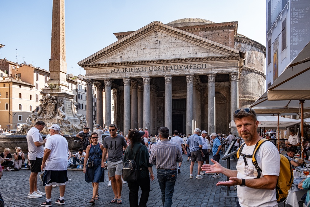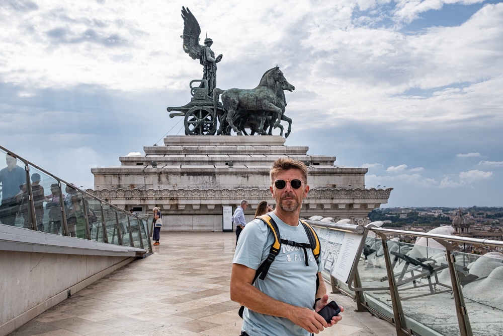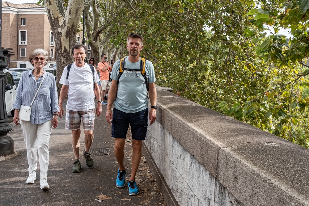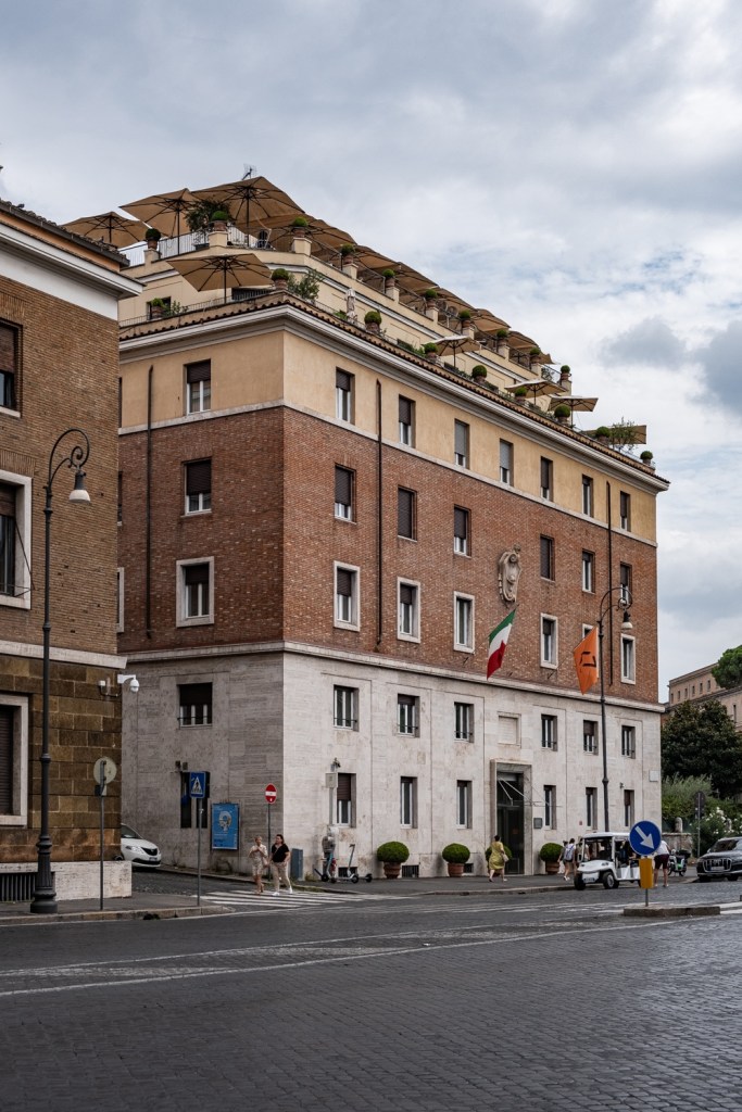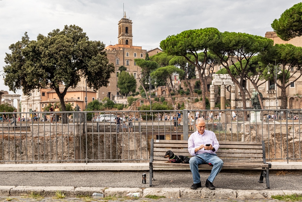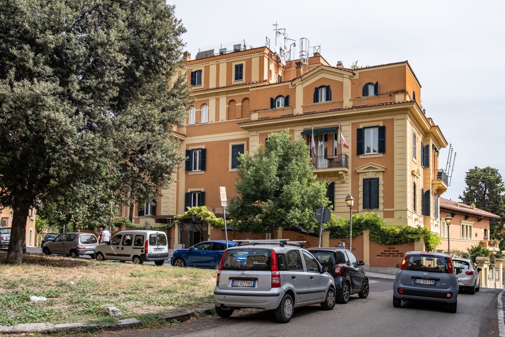 Nem kapkodtunk reggel, de 10 órára ki kellett jelentkeznünk a szállásról utolsó nap lévén. A reggeli után megbeszéltem a recepcióssal, hogy maradhatnak a csomagjaink csak pakoljunk össze. A szállás szállodának kicsi, de nem is egy egyszobás Airbnb. Egy belvárosi ház harmadik emeletén, tök szépen felújított 8 szobából plusz reggelizőből álló mini szálló kedves fiatal recepciósokkal. Így aztán 10 óra volt mikor otthagyva a csomagjainkat elindultunk felfedezni azt a parkot, ami tőlünk 15 perc sétára van és egyik este már rápillantottunk. Egy picit városliget jellegű, a város forgatagából és zajából hirtelen kiszakadva egy nagy zöld területen találtuk magunkat hatalmas fákkal és kiégett fűvel (ami tavasszal szebb lehet, ha több eső esik), kis tavakkal, szökőkutakkal. A szív alakú 80 hektáros terület Róma harmadik legnagyobb és legnépszerűbb parkja. Az 1600-as évek legelején Scipione Borghese (Pál pápa műkedvelő unokaöccse, aki bíboros volt) hozta létre a park korábbi változatát felvásárolva a város szélén lévő szőlőst, hogy itt akár kedvenc időtöltésének, a vadászatnak is hódolhasson. Később, a XVIII. században Marcantonio Borghese herceg alakíttatta ki a ma is meglévő angolkert-stílust a parkban. Akkoriban itt végződött Róma, és csak a kiváltságosok sétálhattak a Villa sétányain. Ma bármelyik római és bármelyik turista megteheti ezt