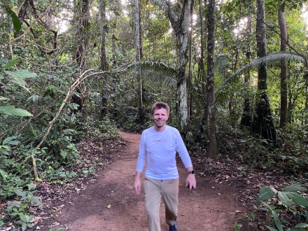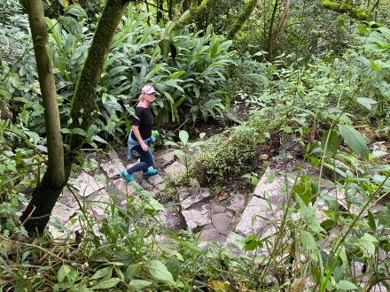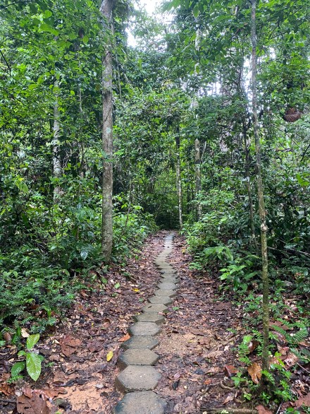 A víziállatok és növények megismerése után visszacsónakáztunk a tavon, ahol a túravezetőnk még egy laza vázlatot felrajzolt a környékről seprűvel és vízzel, hogy meséljen közben a környékről. Az esőerdei ösvényen gyalogolva tértünk vissza a szállásra 10 óra körül.