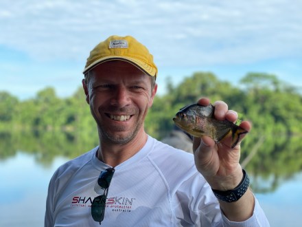 Amazónia rengeteg kalandot kínál: sűrű esőerdőt, színpompás madárrajokat, az éj sötétjében felhangzó jaguármorgást, zöldellő dzsungellel szegélyezett vad folyószakaszokat. A Tambopata folyón fél órás, napfelkeltés hajózás után az esőerdőben másik fél órát gyalogoltunk, hogy elérjük a Tres Chimbadas-tavat, melyben ma is élnek akár 4 méteres hosszúságot is elérő fekete kajmánok, de a halban gazdag tóban akár óriásvidrákkal is találkozhattunk. Ráadásként a fejünk felett színpompás arák köröztek, ami igazán különlegessé tette a reggelt. A tóparton a sűrű fákon futkosó szupercuki majmokat hosszasan szemléltük, melyek csak kicsit voltak nagyobbak, mint a tenyerem. Majd piranhákra pecáztunk, amiben Bandi volt a legügyesebb. Egy közepes méretű, ámde annál élesebb fogút kapott ki a vízből.