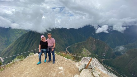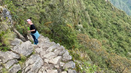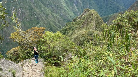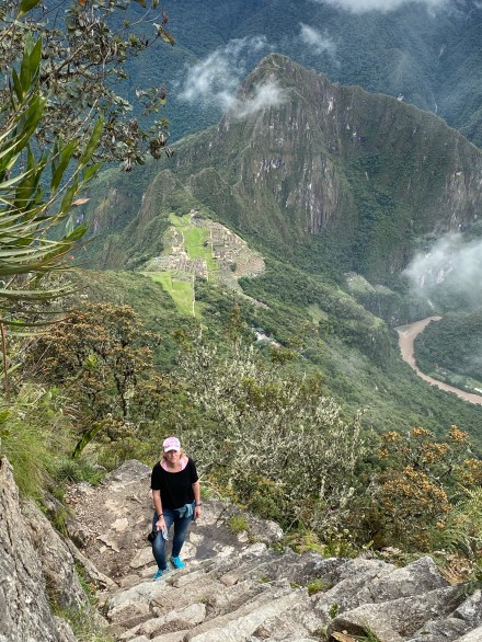 Az egyik hegy neve: Huayna Picchu (Waynapicchu), amely 2720 méter magas. Ezt választják többen, mert ezt kevésbé kemény megmászni és onnan is gyönyörű a rálátás a romvárosra. A másik hegy neve: Machu Picchu hegy (maga a romváros is erről a hegyről kapta a nevét). Ennek a hegynek 3085 méter a legmagasabb pontja, ahova 2417 lépcső visz fel a 2450 méter magasan lévő Machu Picchutól. Az eleje se könnyű, de a második szakasz kifejezetten nehéz: különböző méretű lépcsők folyamatos szint emelkedéssel. Két időszakban engednek fel csak látogatókat: reggel 7-8 óra között, valamint 9-10 óra között természetesen korlátozott számban. Na ezeket azért tudom ilyen pontosan mert mi ennek hegynek a megmászásával kötöttük össze a romváros megtekintését. Mert ha már eljöttünk eddig, akkor legalább fáradjunk el rendesen!